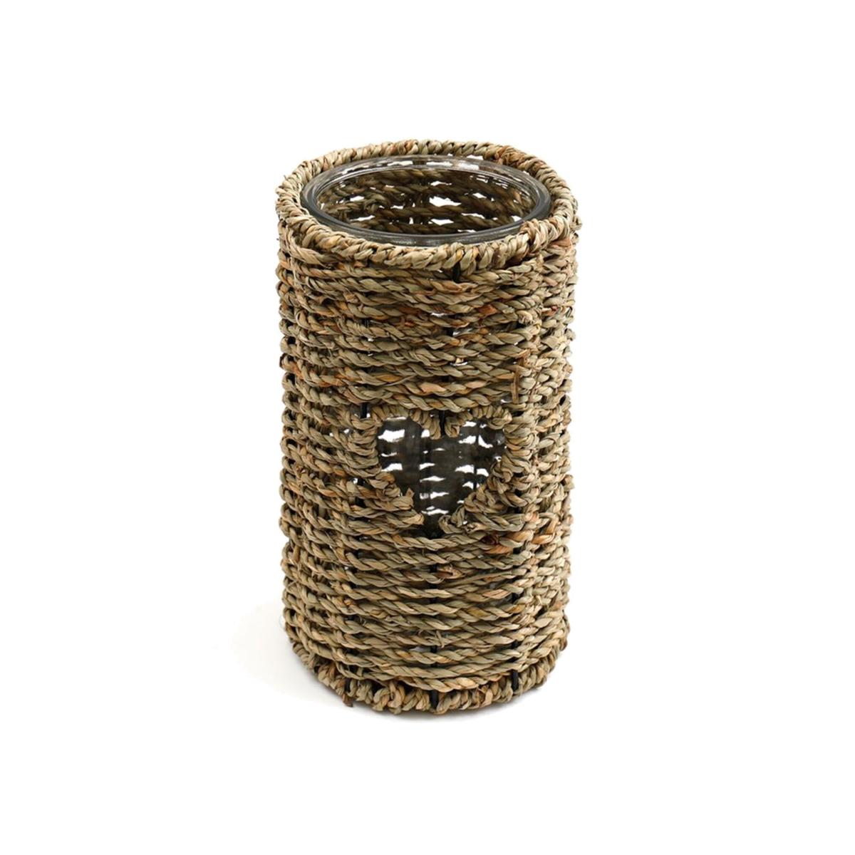 Introducing our 21cm Twisted Seagrass Candle Holder, a charming addition to elevate your home decor. Crafted with meticulous attention to detail, this piece exudes rustic elegance. The heart-shaped cut out infuses a touch of love and warmth into your living space, while the included glass insert ensures safety and ease of use for your favorite candle.