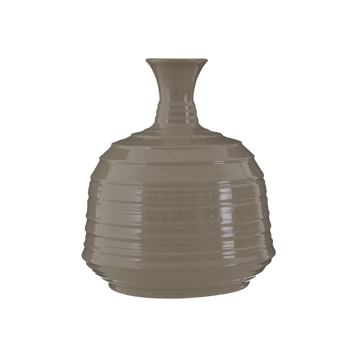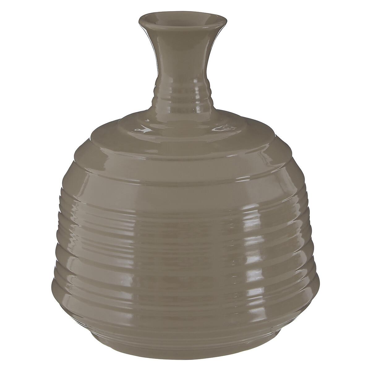 This product will be dispatched by one of our trusted suppliers. You’ll be contacted by their selected courier about your delivery. PREMI01. This vase is made from smooth and durable ceramic, its broad rounded body helping to accentuate the slender, flaring neck. Its ribbed surface denotes the spin of the pottery wheel, where fingers plied the grooves which give the vase its stepped design. With a calming taupe finish, this contemporary accent piece looks great styled alongside muted scandi furniture. Product Dimensions:H 21 x W 17cm