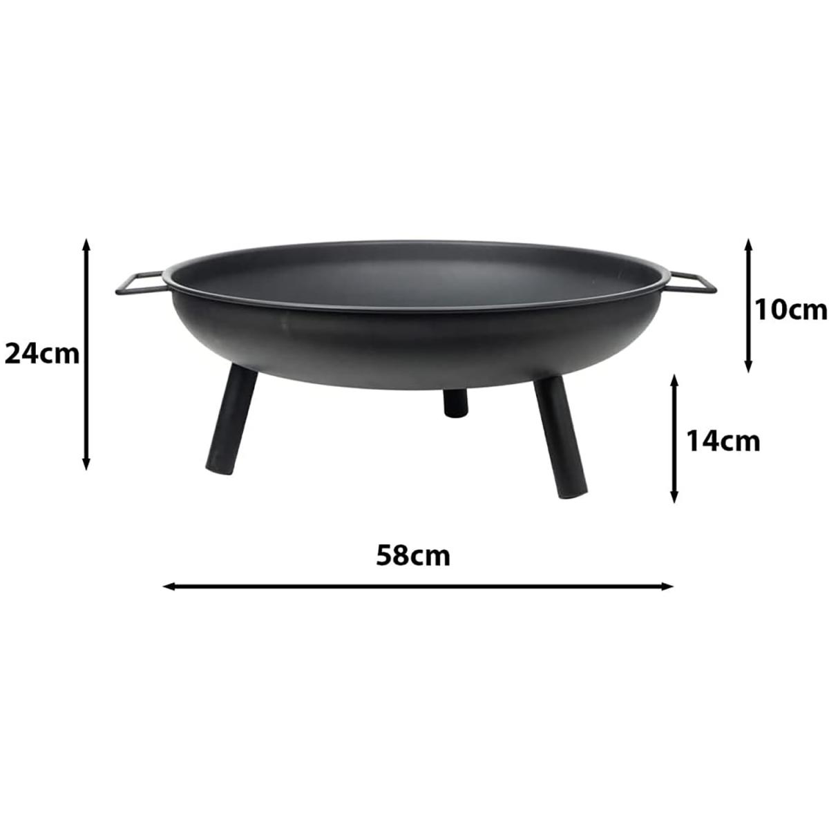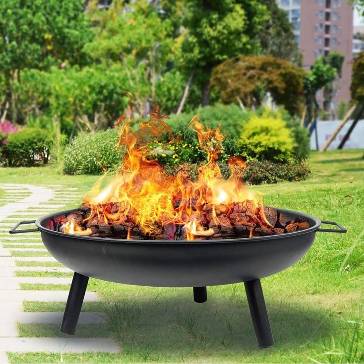 These round fire pits are made from iron with a black powder coated finish, the outdoor heaters and fire pits are strong and sturdy 600. C heat resistant, can be used for a long time. Our elegant round fire pit is perfect for use as a BBQ or simple fire pit and will stand the test of time and repeated use. Our unique and classic style garden heater with an iron cast fire bowl allows for a beautiful view from all angles. Traditional design provides a striking round bowl look when in use or idle. Pivoting fire bowl handles allow for easy portability from place to place and use it as a focal point for a family gathering outdoors. The measurements of our outdoor fire pits for the garden in at a width of 58cm approx perfect size for outdoor fireplace, bring your friends and family together in style in this fire pit. The outside heater or table fire pit accessories can be used for fire pit BBQ, heating patio areas on cold nights, burning wood or charcoal, log burner fire pit, ice pit, etc.