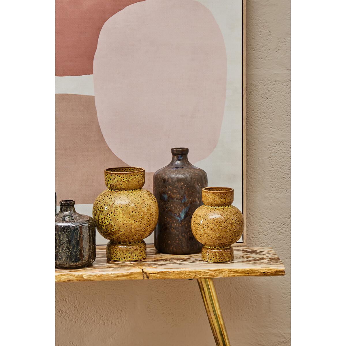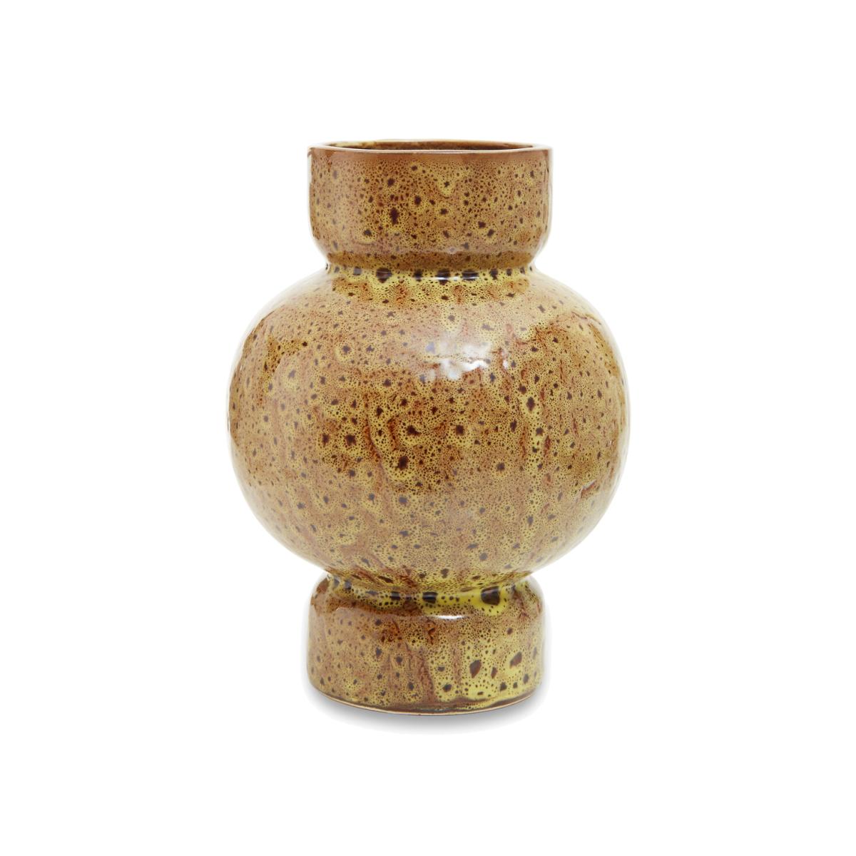 I love the earthy tones and textured finish of this small speckled vase - it adds warmth and a touch of artisanal charm to any space. It works particularly well in rustic, boho, or eclectic interiors, where natural materials and tactile details are key. For styling, consider using it as a standalone piece on a side table or shelf, or pair it with dried flowers or minimalist stems for a simple yet impactful look. Its compact size makes it versatile for both shelves and tabletops, and its neutral brown palette allows it to complement a range of colour schemes, from warm neutrals to more vibrant settings.