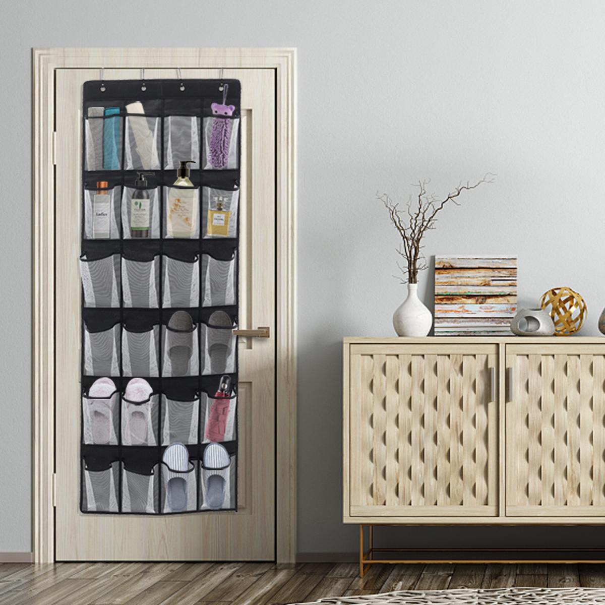 Made of non-woven fabric, which is breathable, soft, durable, foldable, washable and easy to clean material. The shoe cabinet on the door has 24 pockets, which can help you store 12 pairs of shoes neatly. Moreover, the pocket adopts declivitous open design that you can get the stored item easily. Our over the door shoe rack comes with 4 removable stainless steel hooks, make it sturdy enough to hold various of shoes. When folded it takes very little space which is perfect for easy storage or travel. It is your good helper sorting clothes, keep your bedroom tidy and clean, also make your life more easily. Perfect for home, bedroom, living room, bathroom, study, kitchen, office and so on.