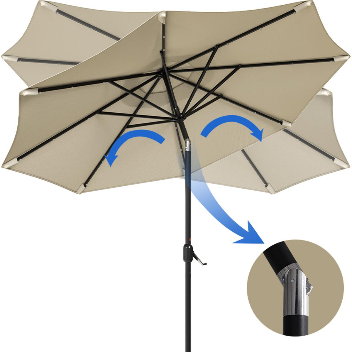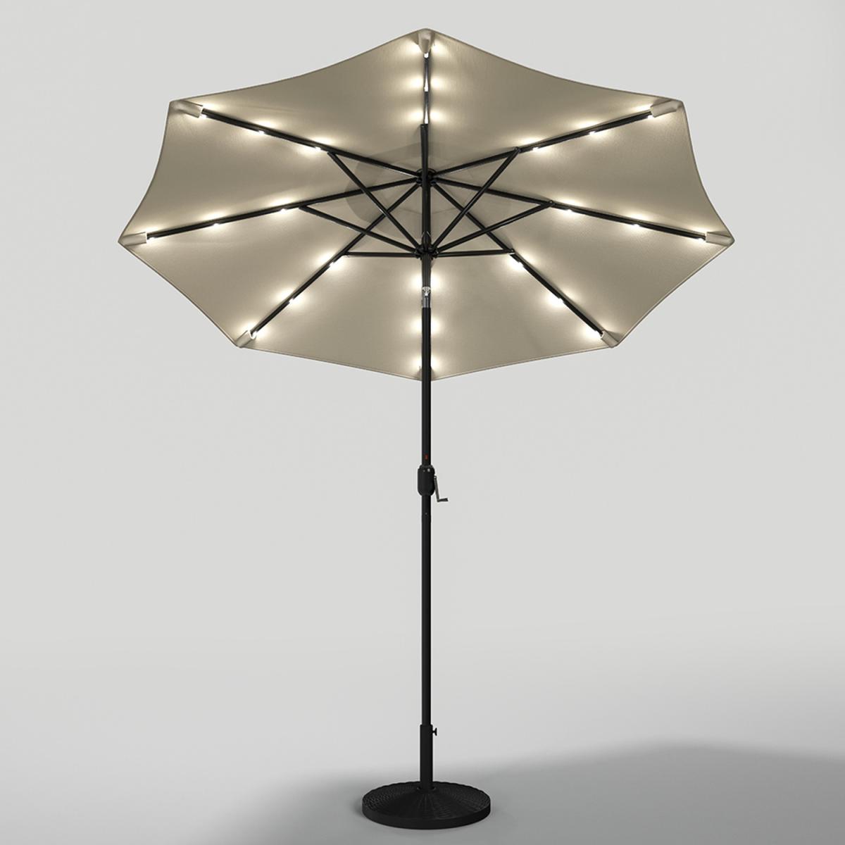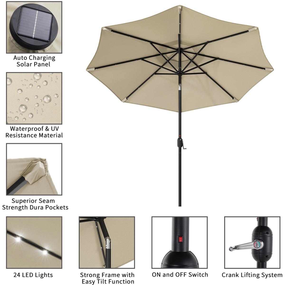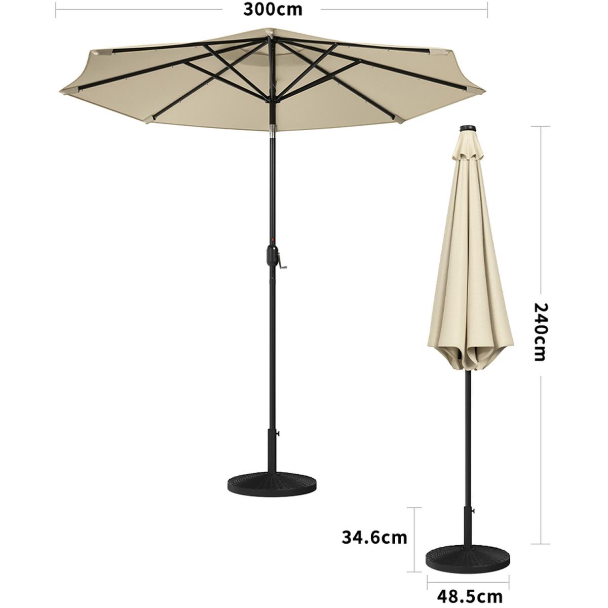 24 Solar Lights Garden Parasol Umbrella with Base - Beige