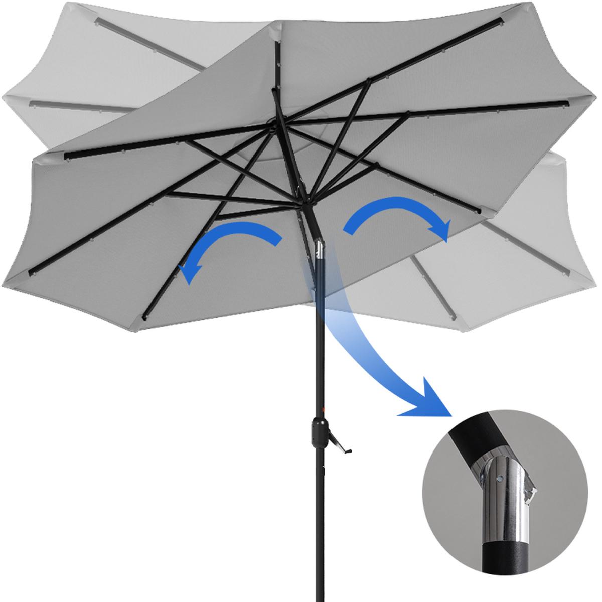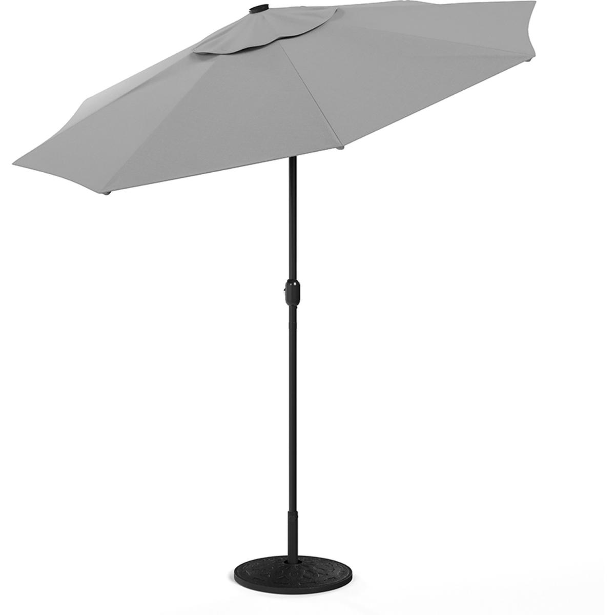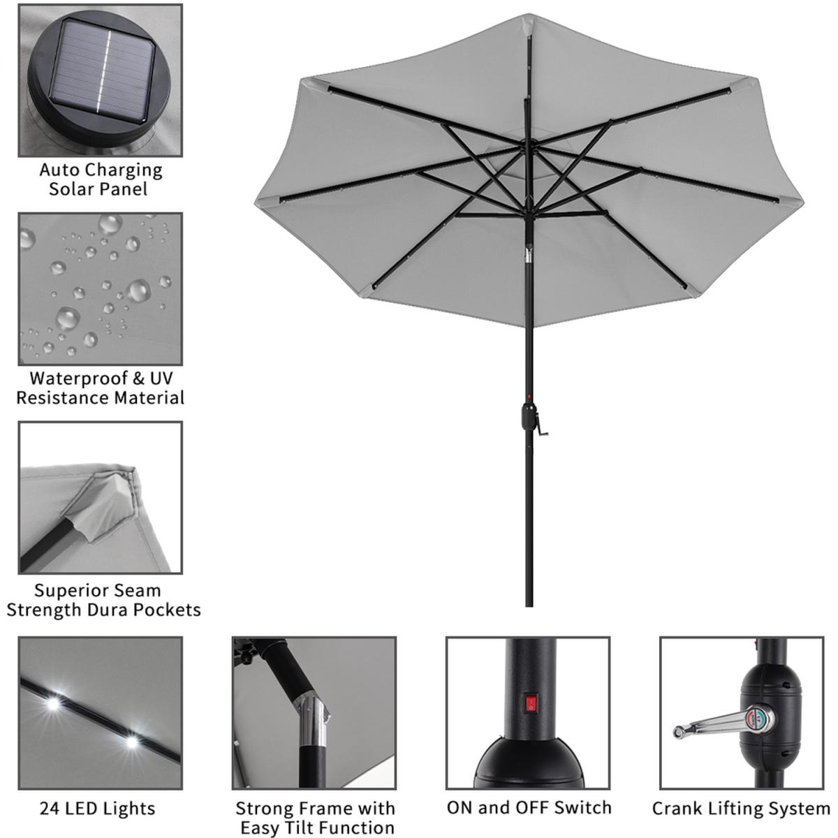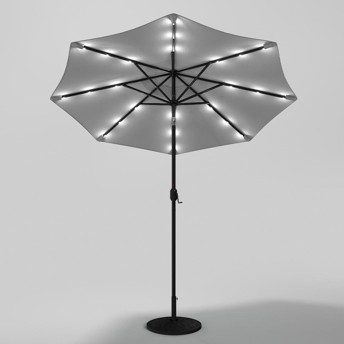 24 Solar Lights Garden Parasol Umbrella with Resin Base - Light Grey