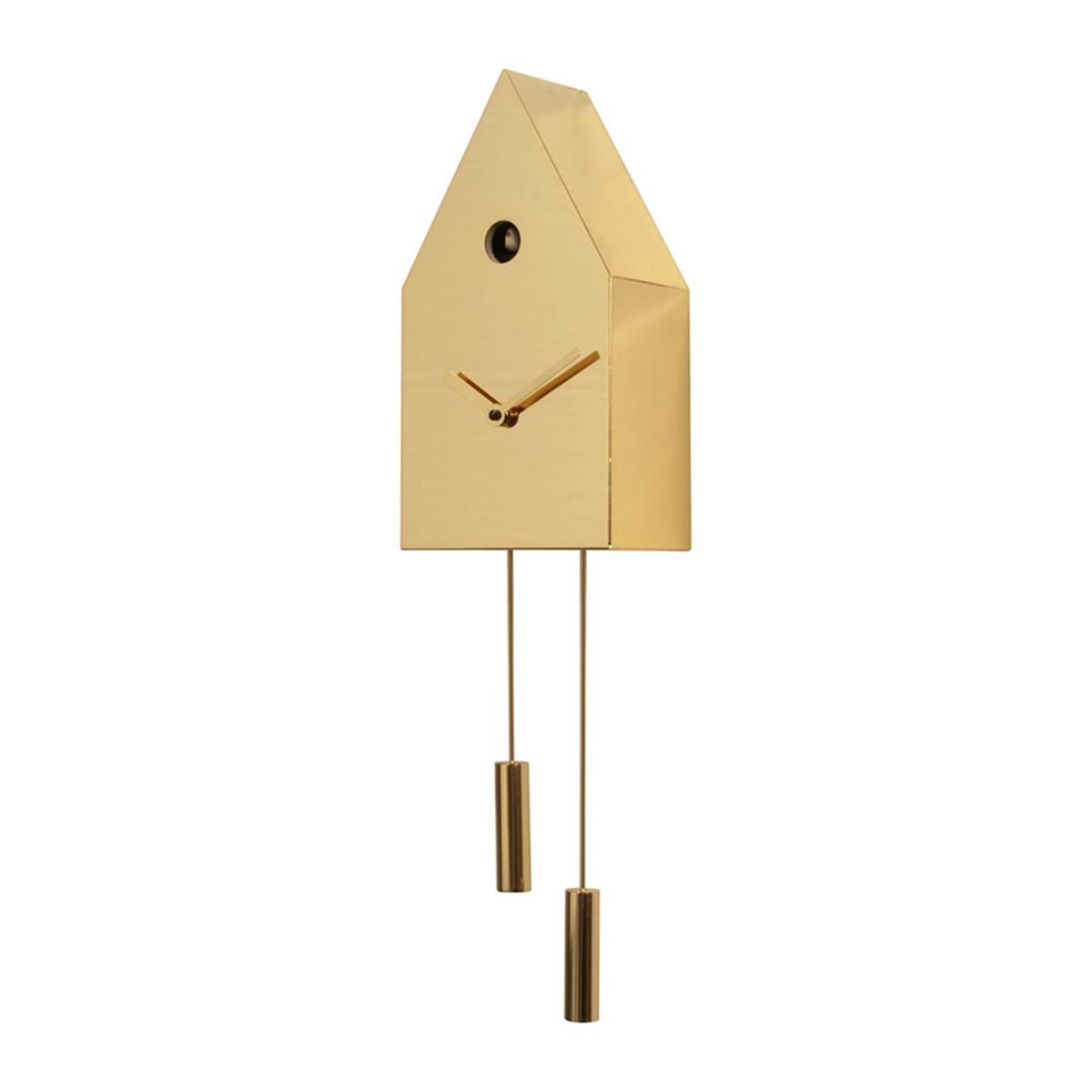 I love this cuckoo clock for its minimalist yet playful design, which makes it ideal for contemporary and eclectic interiors. Its understated gold finish adds a touch of elegance without overwhelming the space, making it versatile enough to suit living rooms, kitchens, or home offices. When styling, consider pairing it with modern furniture and statement accessories in neutral tones to let the clock stand out. For practical tips, hang it at eye level for easy reading and to ensure the pendulums and weights are unobstructed. It’s a fun, functional piece that adds character without cluttering the decor.