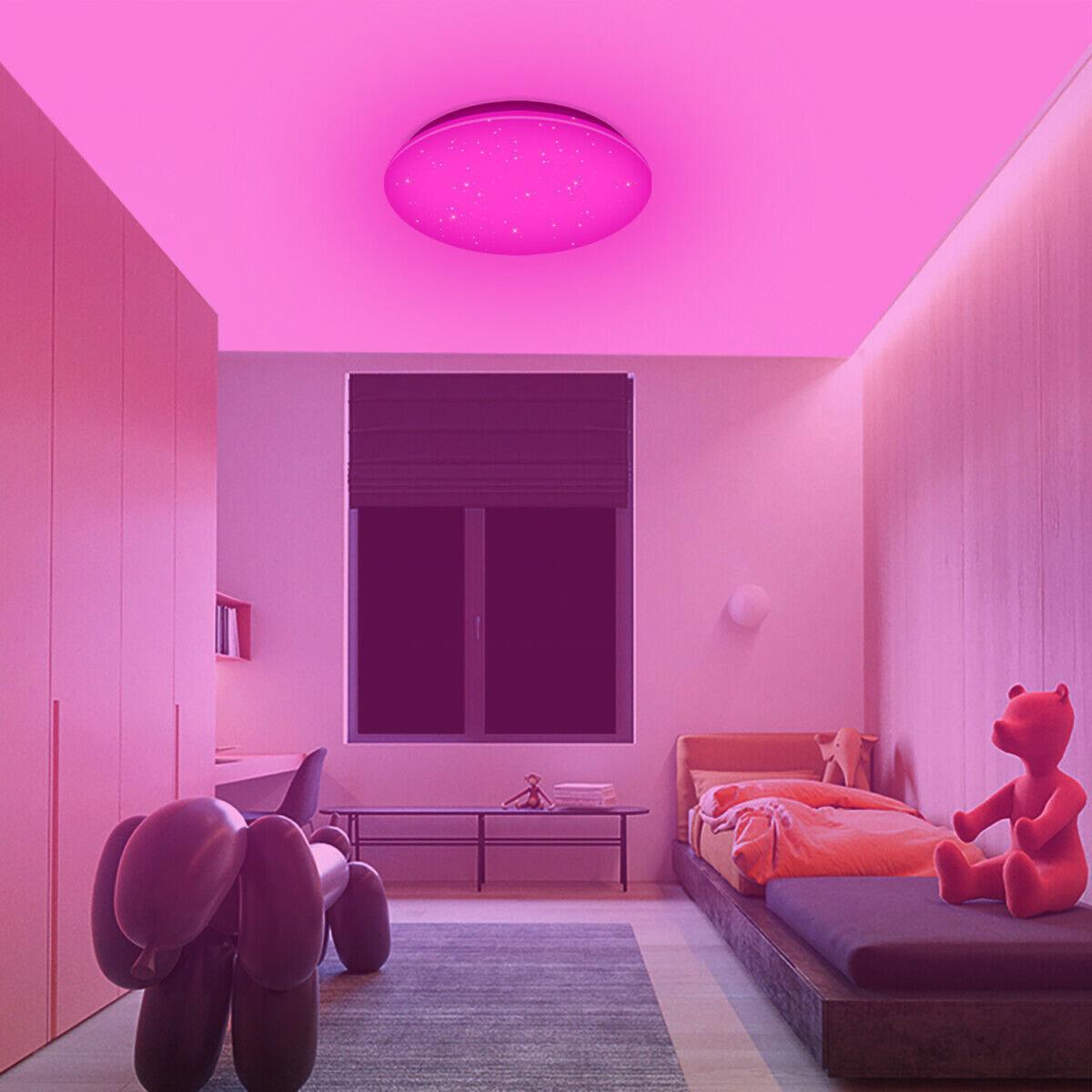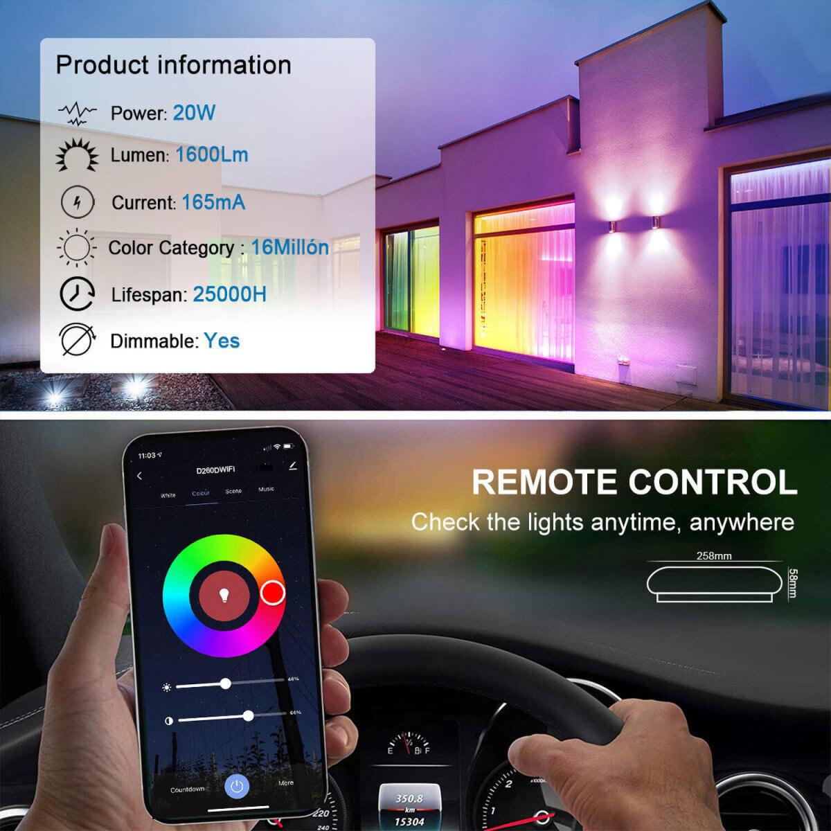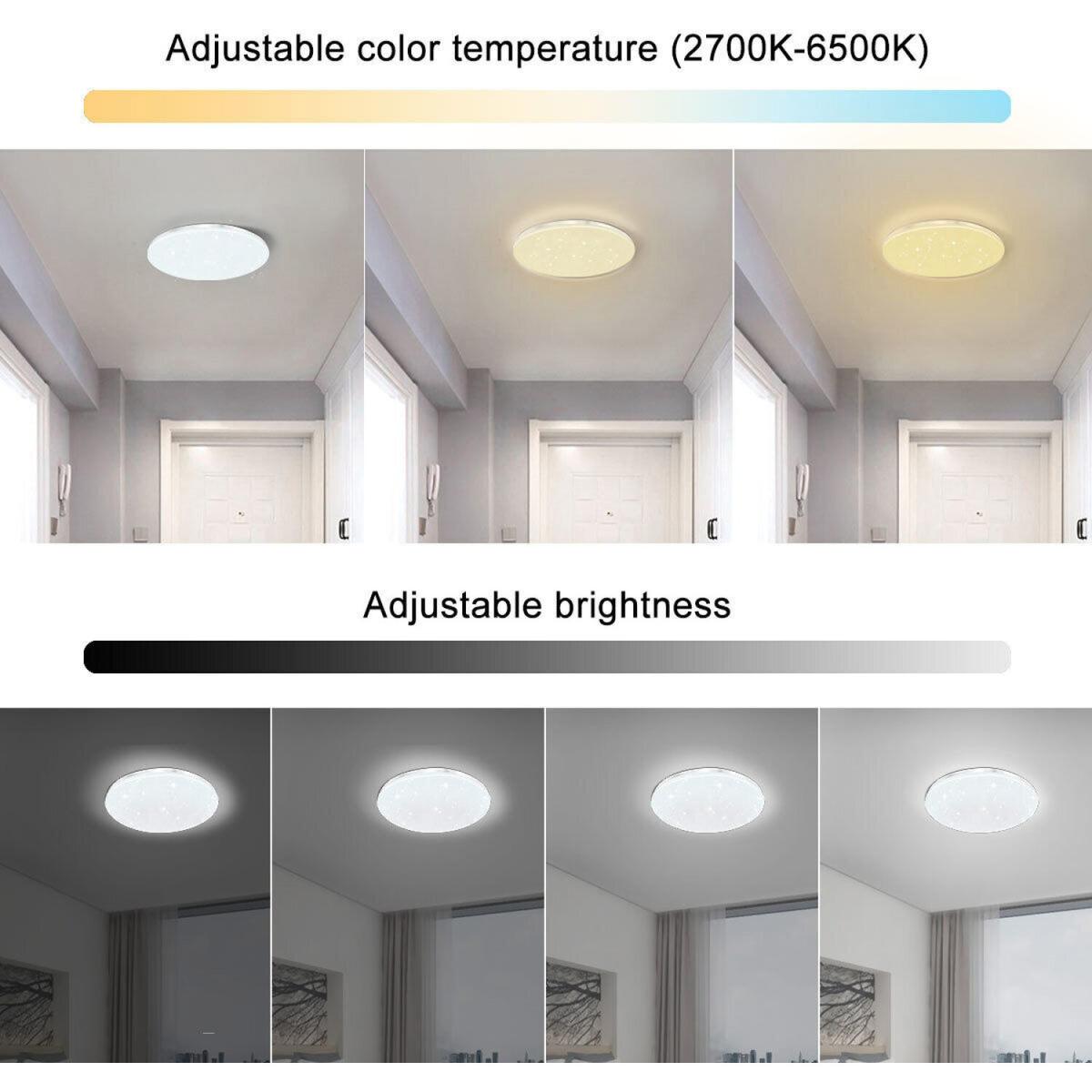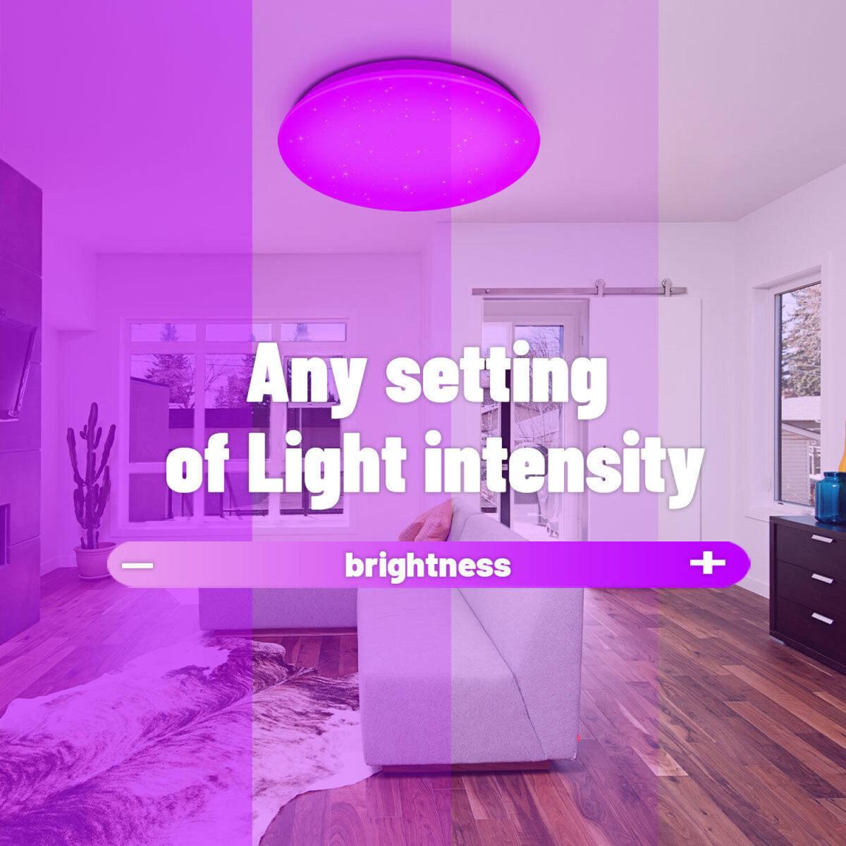 Control your lights with your fingertips whenever and wherever you are. A Wi Fi connection is much more reliable than Bluetooth and consumes less. Works with Amazon Alexa (Echo, Dot and others) and Google Assistant (Home, Mini and others), allowing you to control your lights hands-free with simple voice commands. Create a wide variety of atmospheres with over 16 million colours, different shades of white (2700. K to 6500. K) and fully dimmable via app or voice control. Set up lighting times, automate your lights - turns on and off automatically at set times. Just push the slide lock outward to attach the flat ceiling light, connect it to your Wi Fi and you're ready to go. The 24W ceiling light is equal to a 192W light bulb but saves 85% electricity.