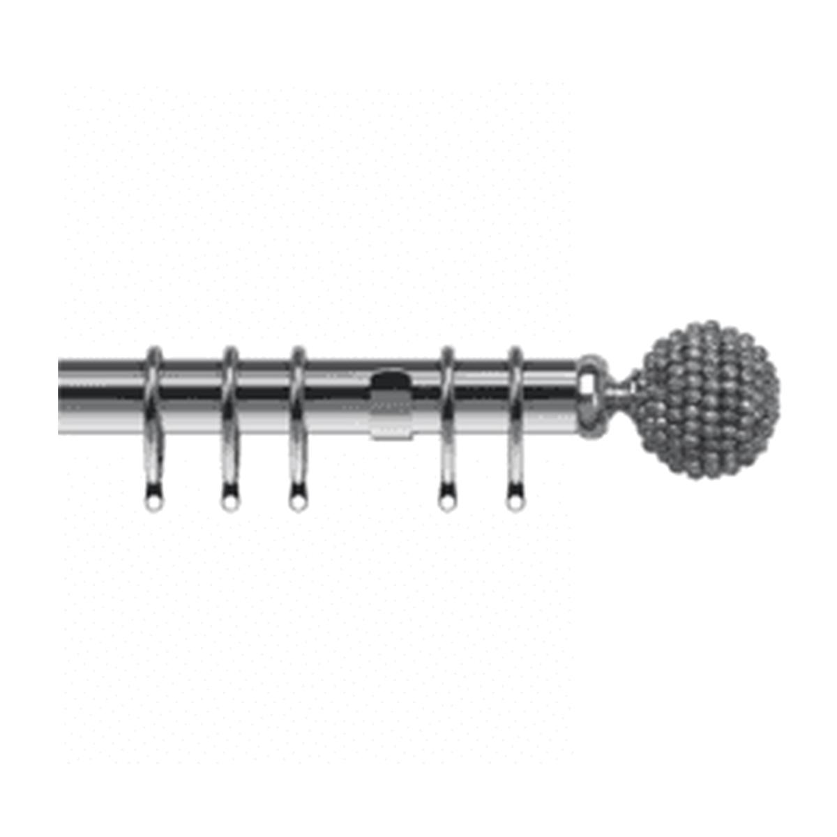 25-28mm Mia End Satin Silver Metal Curtain Pole Set - Silver / 170cm