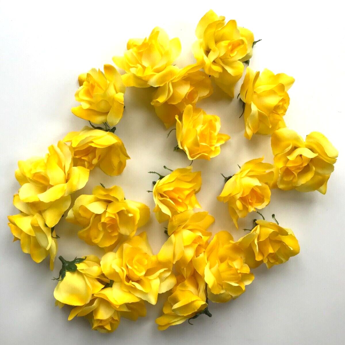 25 Individual Faux Yellow Rose Flowers - Yellow