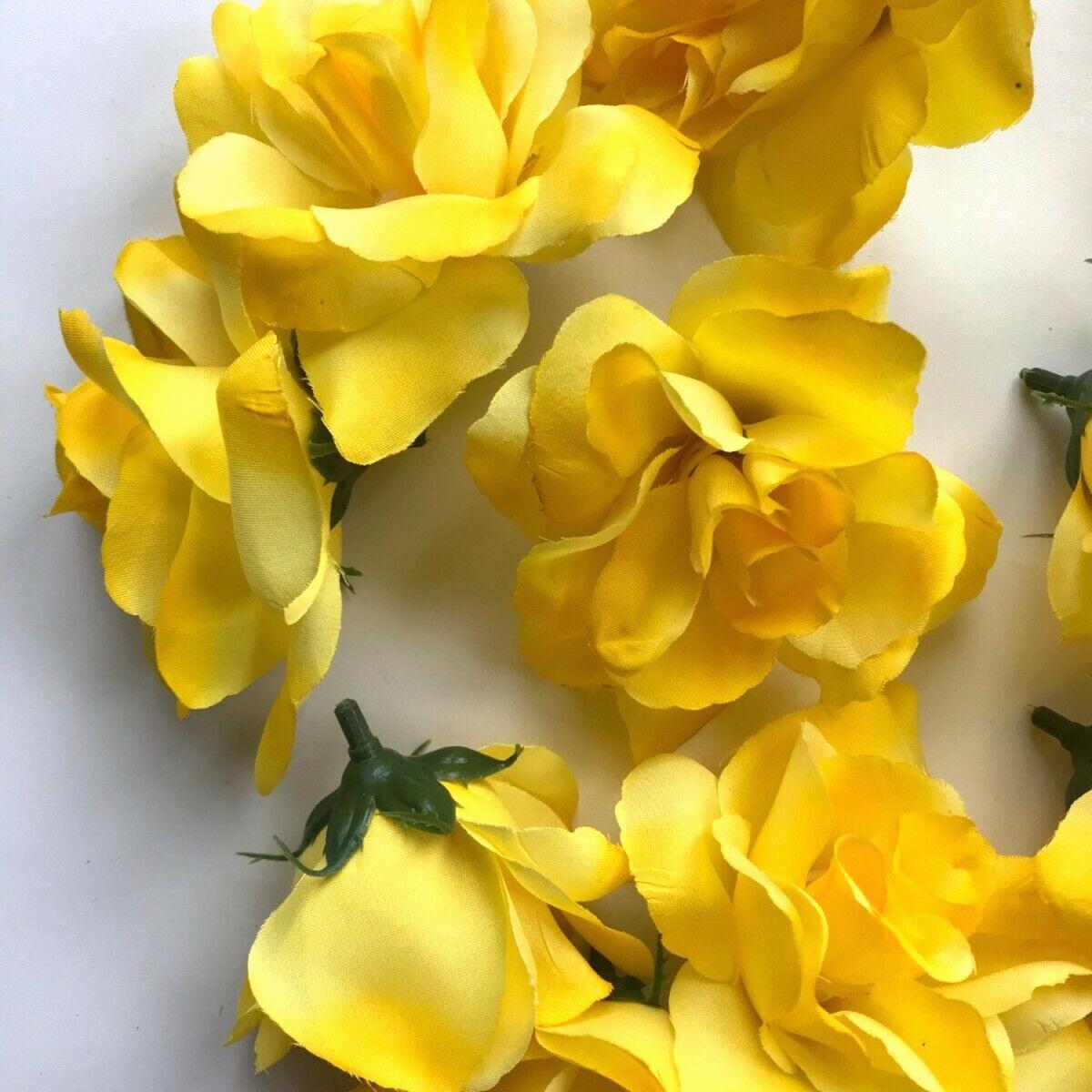 These lovely Artificial yellow Rose flowers measure 9cm wide. Perfect for faux flower craft projects, wedding decorations, gifts and flower displays in lobby areas, hallways, living rooms and entertaining areas. Great for making wreaths, Garlands etc.