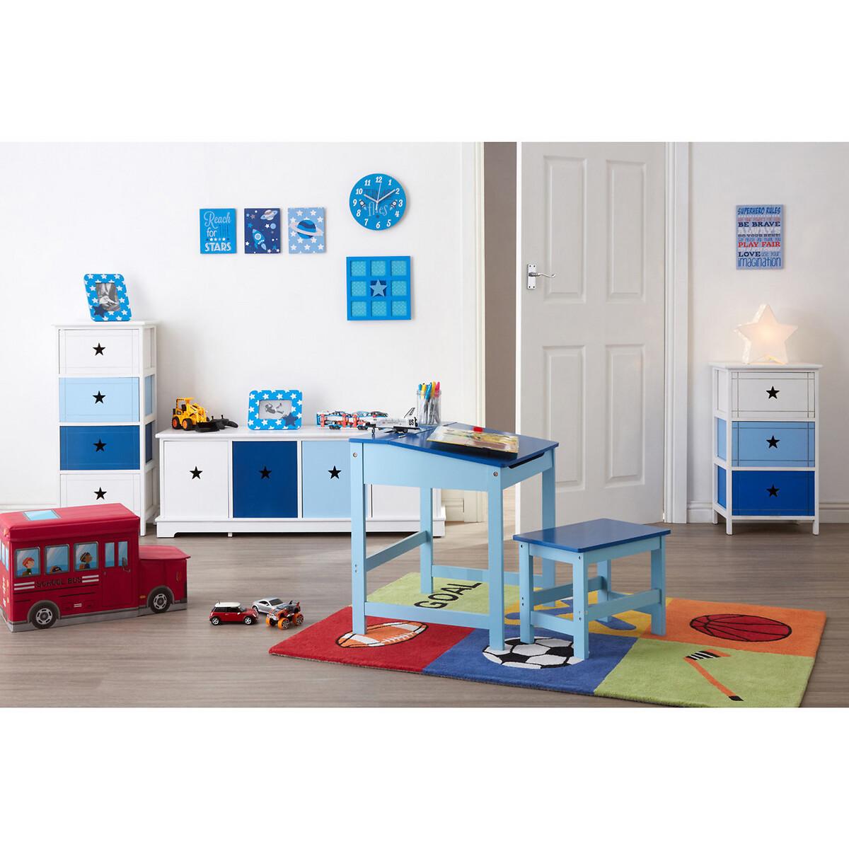 I love this playful blue clock for adding a fun, functional touch to a child's bedroom or play area. Its bright hue works particularly well in lively or colourful interiors, but can also serve as a cheerful contrast in more neutral spaces. The size makes it a standout piece without overwhelming the wall, perfect for creating visual interest. For styling tips, hang it at a height easily visible from the bed or play zone, and pair it with other colourful accessories or personalised touches to foster a lively yet organised space. Its rocket graphic and bold numbers make it both practical and engaging, encouraging kids to learn to tell time while keeping the room vibrant.