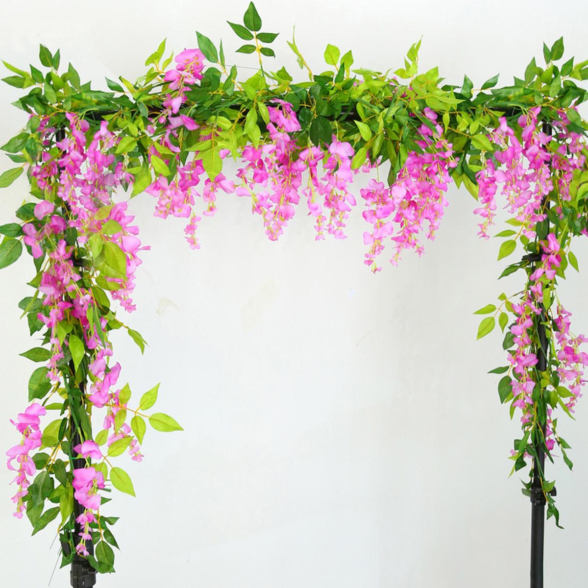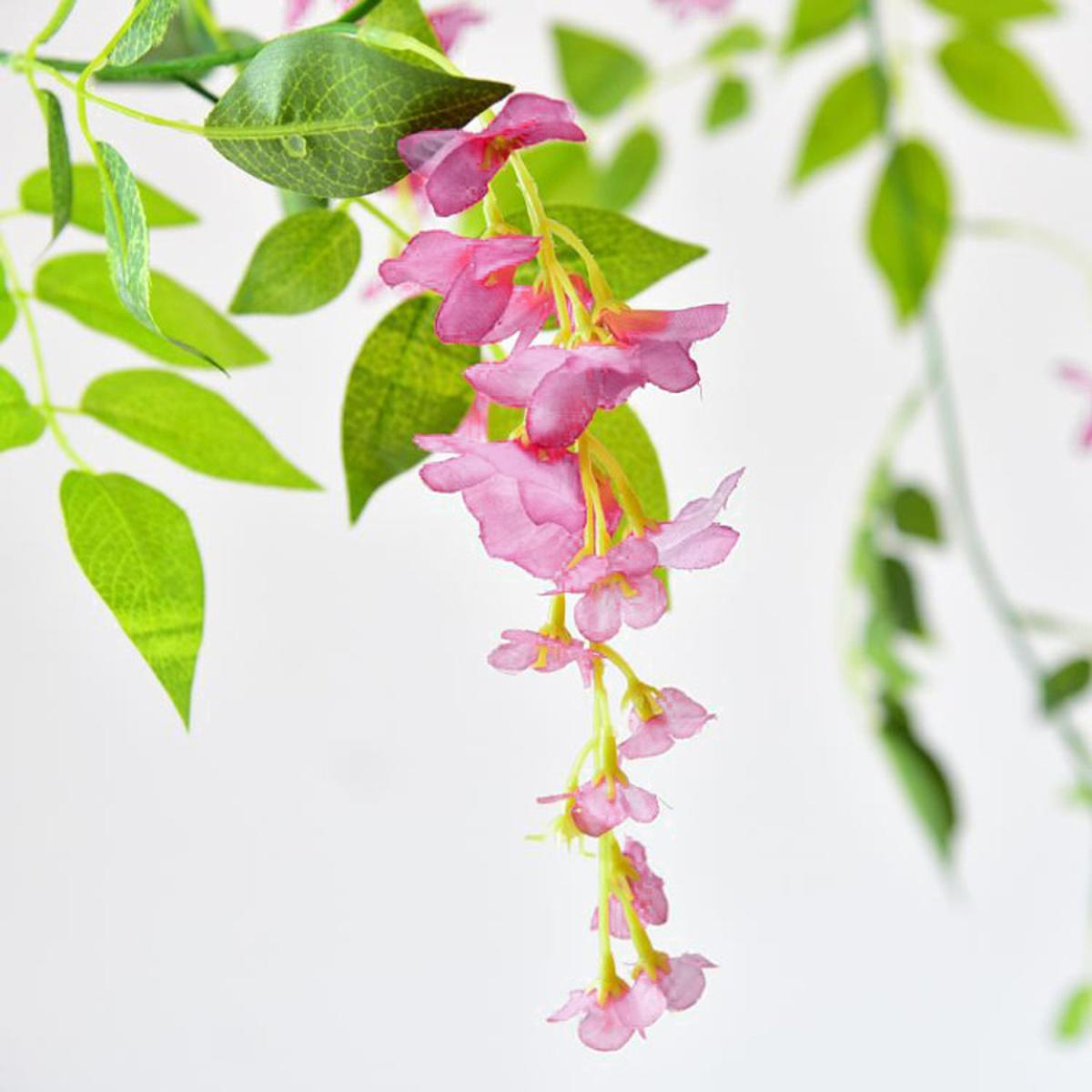Thick silk flowers and leaves, perfect for wedding decoration, table arrangement or elegant home decoration. Wisteria garland symbolizes love and happiness. Artificial wisteria vines garland can make your wedding or various parties more romantic and full of color. Decorate your weddings, parties, banquets and more with artificial wisteria vines garland to make your life more colorful.