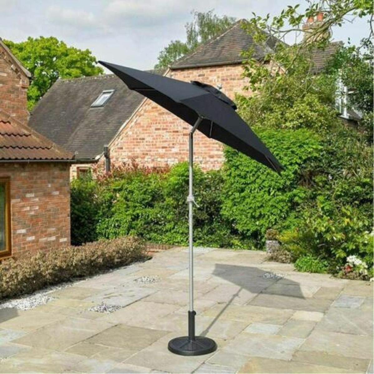 The garden umbrella parasol canopy is made from high-quality polyester. The frame is constructed with alloy steel and aluminium that protects you from the sun, light and rain. This parasol umbrella also has an aluminium crank handle. The top air vent prevents airflow and wind from pulling up the parasol weights. Our parasol umbrella add extra shade, coverage and sun protection on your beach trips or your outdoor garden space. This large garden parasol is also perfect for keeping you shaded when you are relaxing or dining at a garden table and chairs. The grey powder-coated aluminium pole with a solid pattern construction for greater strength and stability. The garden parasol has a 2-piece pole, 160g/m² cover with 6 steel ribs and an air flap. These garden parasols are easy to assemble and store when not in use. It gives coverage from the sun to your deck, garden outdoor and patio. The garden parasol umbrella comes with a winding crank and tilt function for easy erection in a matter of minutes. With a crank handle mechanism, you can easily open and close your garden parasol. Our tilting parasol can adjust the height and tilt angle according to the position of the sun. This 2m large garden parasol umbrella for sun shade is perfect for use in both indoor and outdoor spaces. Enjoy your dining, conversation, or family time at your patio, garden, backyard, etc under this parasol. These high-quality garden parasols are an essential piece of your garden furniture.