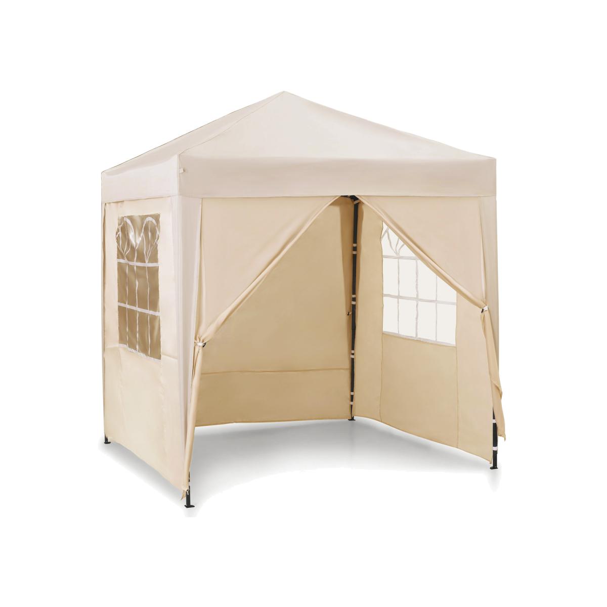 Available in soft grey and classic ivory, the easy-to-assemble shelter is constructed from a sturdy steel frame and a 42O. D Oxford waterproof cover. The gazebo can be secured into place using the included pegs and cords. Measuring 2 X 2m, and with a max roof height of 2.5m, this essential garden party gazebo has ample room for entertaining. Two side walls feature a transparent window to allow daylight to flood into the gazebo when the flaps are zipped together, which gives the gazebo a bright and airy feel. Alternatively, the side panels can be removed on warmer days to leave an effective canopy that provides welcome shade from the sun. The perfect space to set up food and drink for partygoers, this pop-up gazebo offers welcome shelter from the harsh sun or passing showers.
