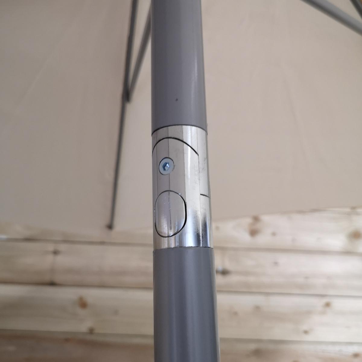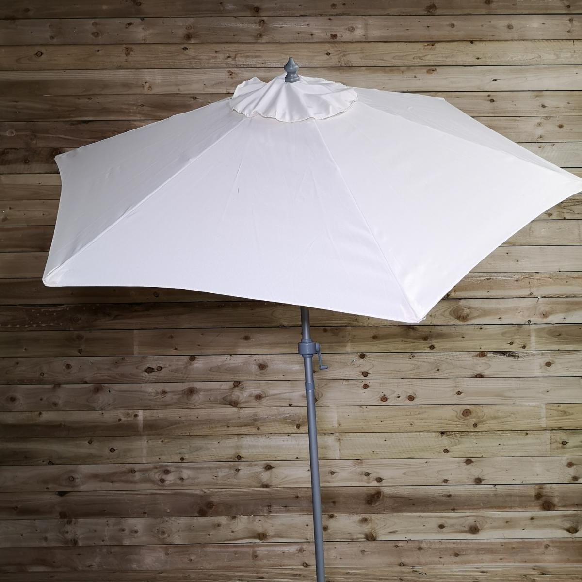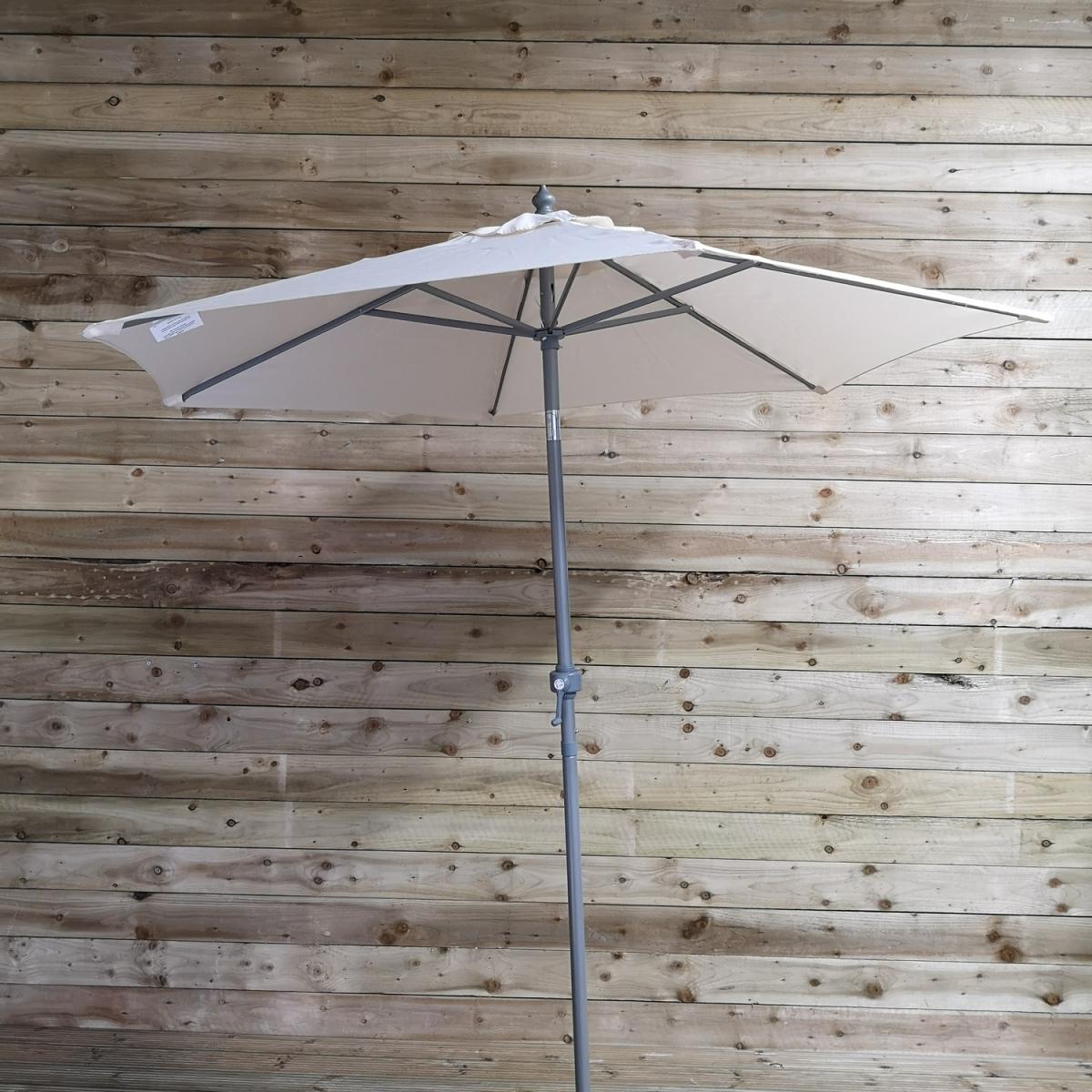 This outdoor parasol is perfect to create some shade and protect you from the sun's harmful UV rays. Easy to assemble, disassemble and store. Simply screw in the plastic finial, connect the two aluminium poles and ensure the locking clips are in place, Wind the plastic crank handle to open and close the umbrella, the tilt function can be activated by the press of a button, allowing you to achieve optimum shade no matter which way the sun is facing. Weighing roughly 2.8kg, the lightweight design allows it to be easily transported, should you wish to take it camping or to the beach etc. Easy to maintain navy polyester canopy. Simply wipe clean with a damp sponge or cloth and allow to dry. We would recommend using the parasol with a sturdy base, (sold separately) and we would advise that the item is safely stored when not in use.
