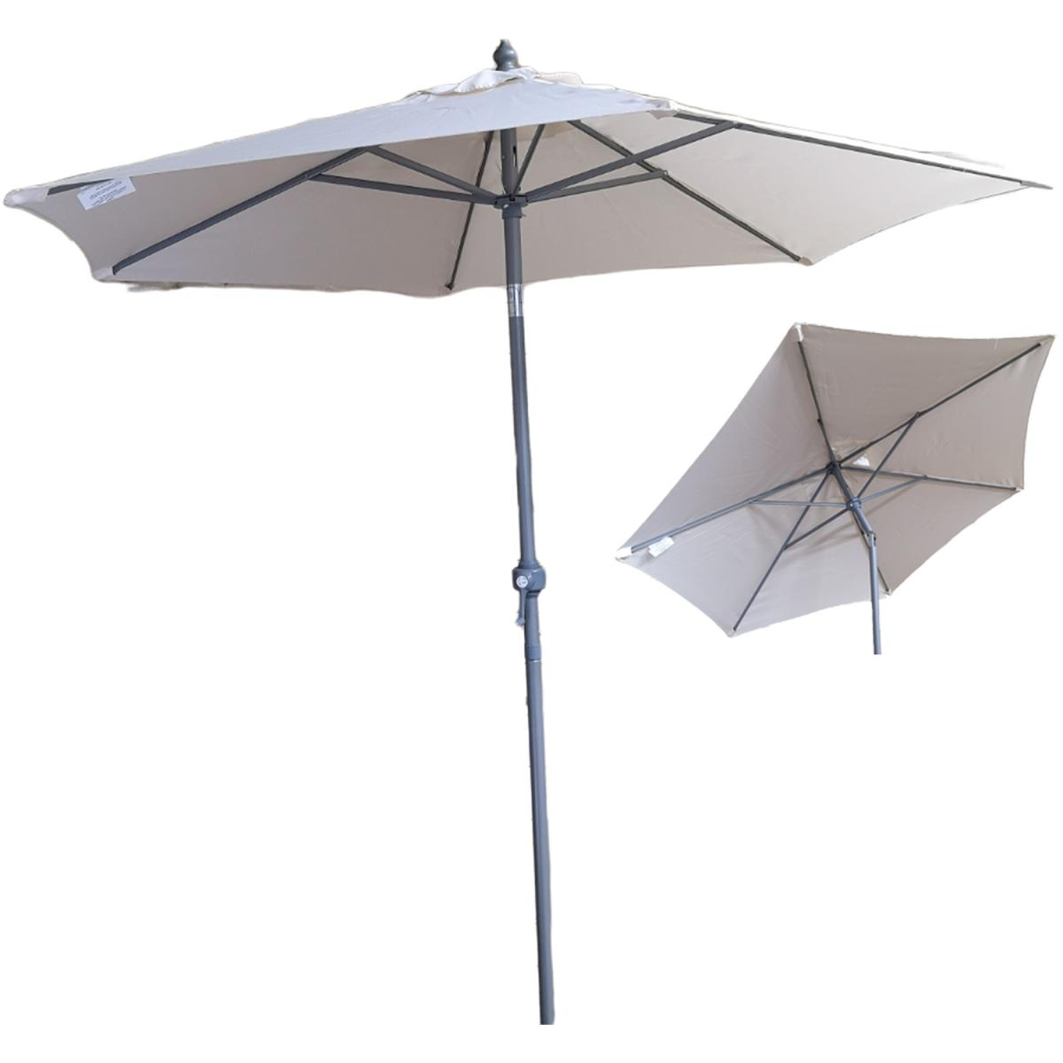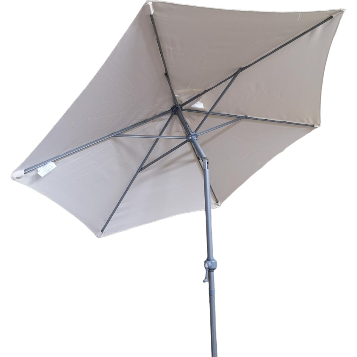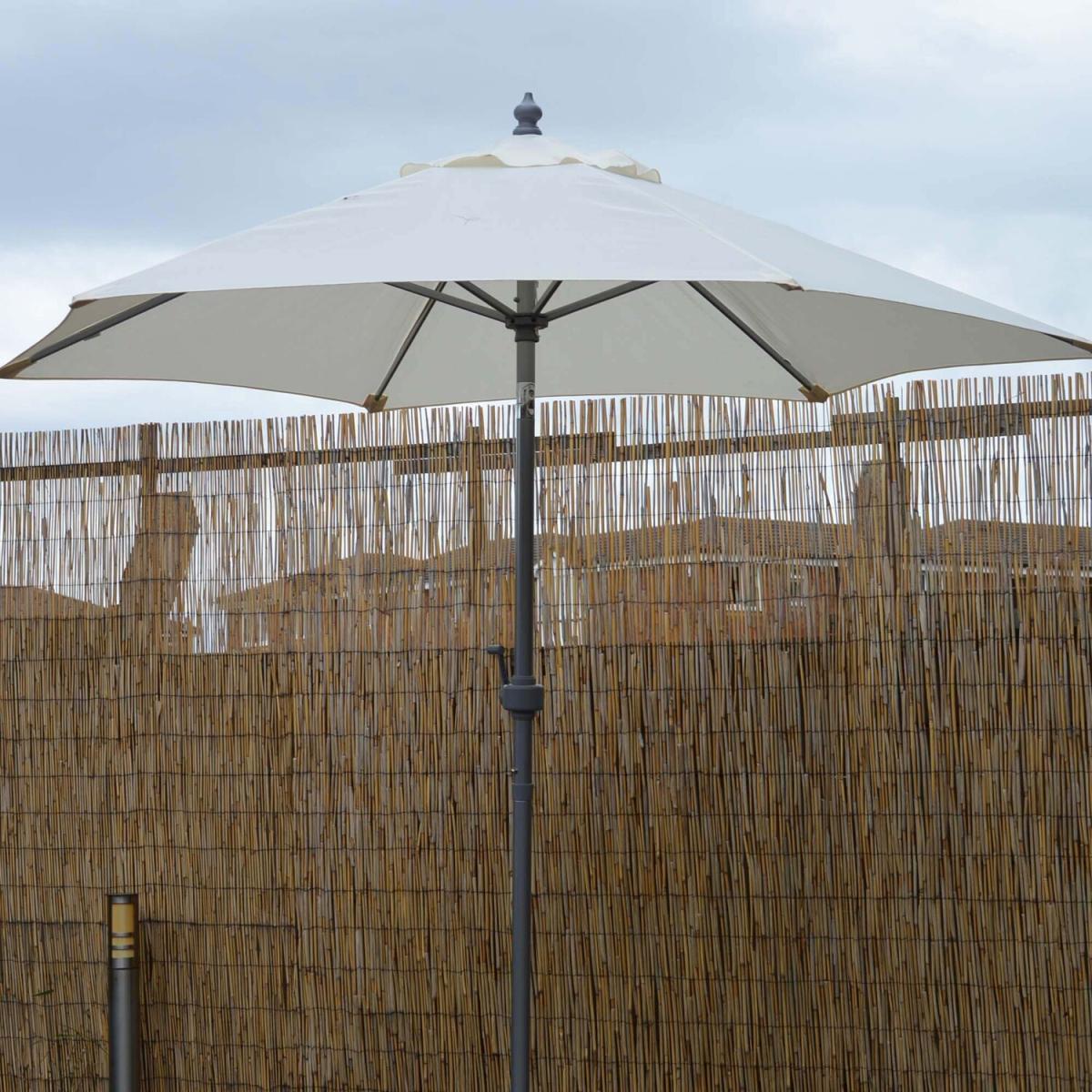 This outdoor parasol is perfect to create some shade and protect you from the sun's harmful UV rays. Easy to assemble, disassemble and store. Simply screw in the plastic finial, connect the two aluminium poles and ensure the locking clips are in place, Wind the plastic crank handle to open and close the umbrella, the tilt function can be activated by the press of a button, allowing you to achieve optimum shade no matter which way the sun is facing. Weighing roughly 2.8kg, the lightweight design allows it to be easily transported, should you wish to take it camping or to the beach etc. Easy to maintain navy polyester canopy. Simply wipe clean with a damp sponge or cloth and allow to dry. We would recommend using the parasol with a sturdy base, (sold separately) and we would advise that the item is safely stored when not in use.