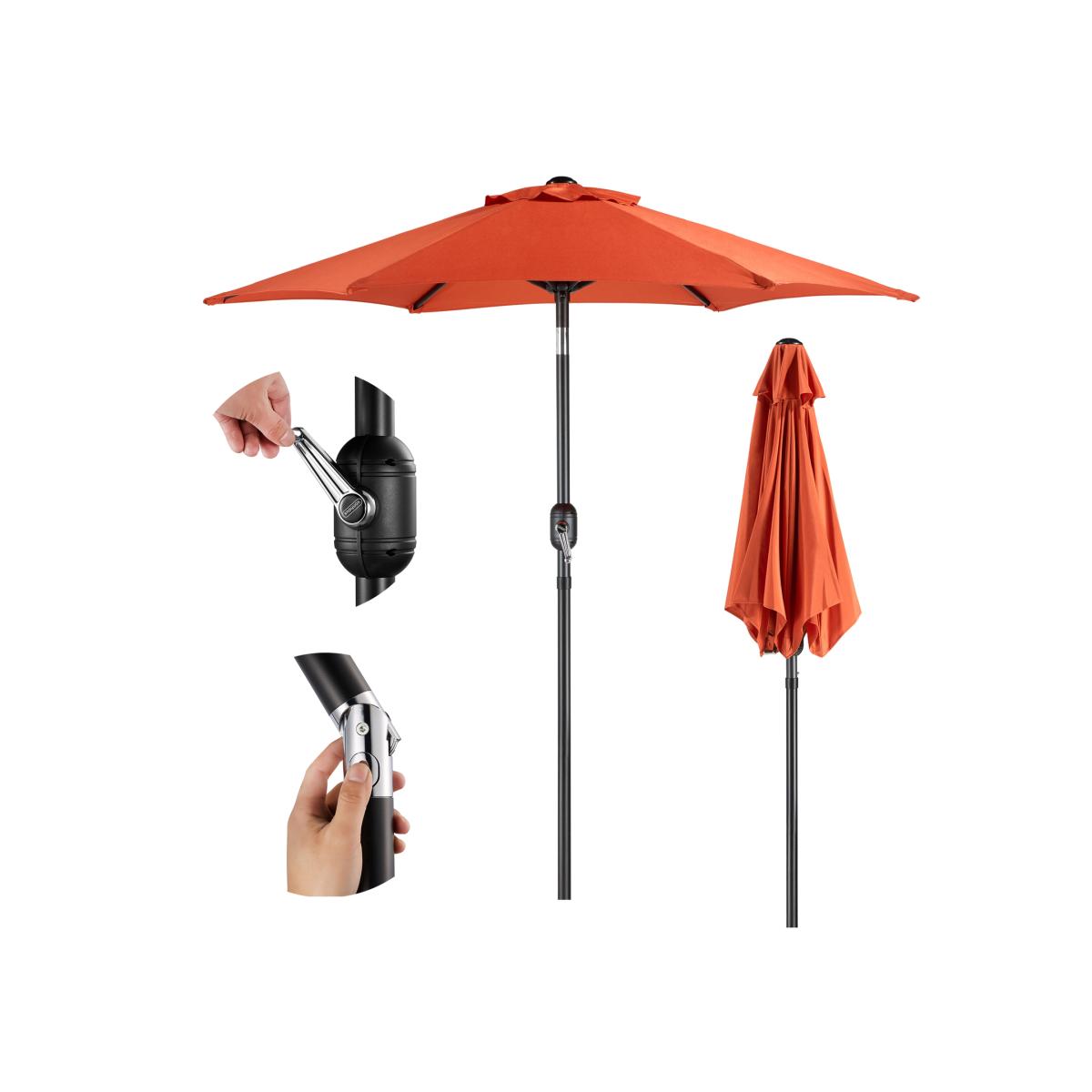 Enjoy summer days in the comfort of the shade with the Von Haus 2m parasol. Rest easy thanks to the air vents, designed to prevent the freestanding parasol from billowing in strong gusts of wind. As well as ensuring safe use, the vents increase ventilation to enhance comfort on the hottest of days. Nothing interrupts a garden lounging session like the blinding sun creeping into your eyes. Say goodbye to squinting for good with our free standing parasol. Angle the canopy up to 30 degrees in an instant using the simple push-button tilt mechanism, no tools required! From harsh midday rays to low-laying evening sun, the 180gsm polyester outdoor umbrella provides UV30 plus protection to keep harmful rays at bay. Browse our parasol bases to find the perfect match for the 38mm powder coated steel pole.