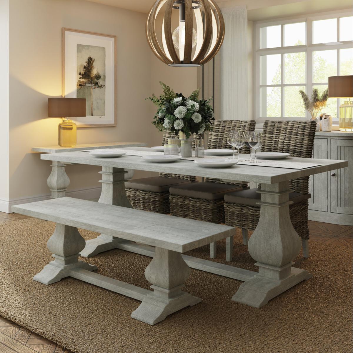 Elevate your dining experience with the magnificent 2. M Solid Reclaimed Pine Dining Table. Crafted from high-quality, solid reclaimed pine, this impressive table exudes rustic charm and timeless elegance. Featuring a free matching extension leaf, the table can easily accommodate up to 10 people, making it the perfect centerpiece for both intimate gatherings and large celebrations. Adorned with a stunning limewashed finish, this dining table seamlessly complements a variety of interior styles. The strong, sturdy, and durable construction ensures long-lasting quality, while the partially assembled design allows for quick and easy setup. Elevate your dining space and create lasting memories around this exceptional solid reclaimed pine dining table.