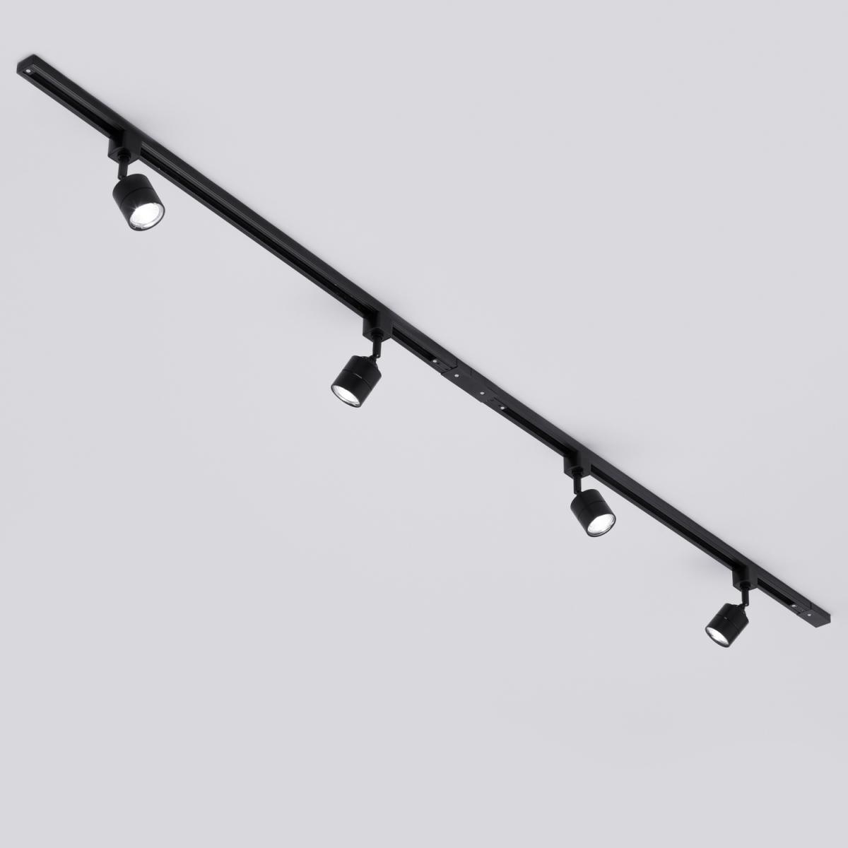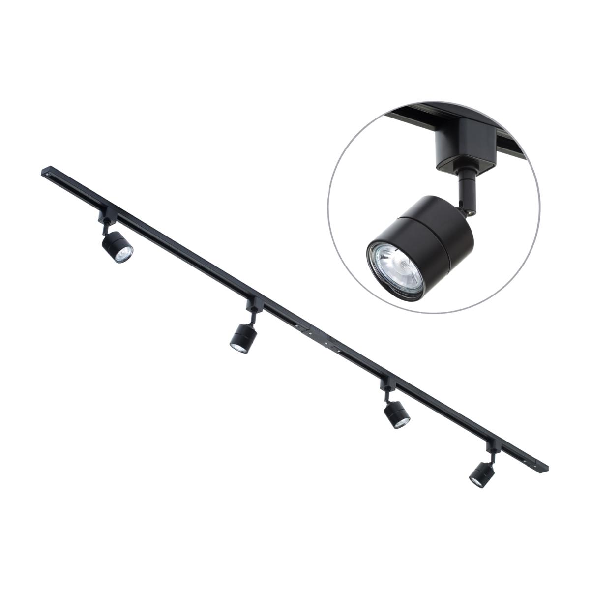 2m Track Light Kit with Soho Spotlight Heads and LED Bulbs - Black / 4