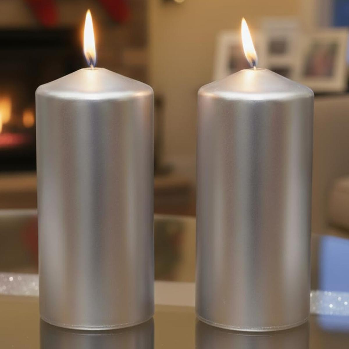 I love these silver candles for adding a modern, sleek touch to any space. Their metallic finish works particularly well in contemporary interiors, especially when styled alongside glassware, marble surfaces, or monochrome palettes. They’re versatile enough to complement festive or minimalist looks, making them a staple for table centrepieces or mantel displays. For styling tips, try grouping them with shorter candles or greenery for visual interest, and consider placing them in a candle holder for safety and added style. Their understated elegance makes them suitable year-round, whether for everyday ambiance or special occasions.