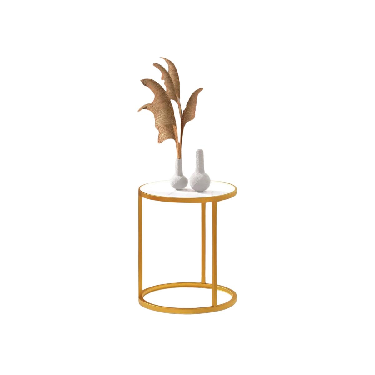 Adorned with a white faux marble top, this round side table provides a visually pleasing spot to exhibit your magazines, coffee mugs, literature, and decor. Its compact size ensures essentials are always within arm's reach, and the smooth edges offer protection against inadvertent knocks. Anchored by a sturdy golden metal frame, this bedside table boasts exceptional stability and resistance to rust. Its sizable round base further fortifies its stance, preventing any wobbling. Additionally, anti-slip foot pads safeguard your flooring from scratches, enhancing its longevity. Designed to maximize efficiency in small areas, this compact tea table occupies minimal floor space, making it ideal for cozy rooms. Its lightweight construction enables easy placement next to sofas or bedside areas. Furthermore, the hollow frame structure affords both display and storage space, optimizing your home's spatial organization. The gilded metal legs paired with the faux marble top confer a sophisticated allure upon this round coffee table, seamlessly complementing both modern and transitional decor themes. Its luxurious design makes it a prized addition to various settings such as living rooms, bedrooms, balconies, or reception areas. With comprehensive instructions and essential hardware included, assembling this round marble top table is a breeze. Moreover, its scratch-resistant and waterproof surface ensures hassle-free maintenance, requiring only a simple wipe-down to keep it pristine.