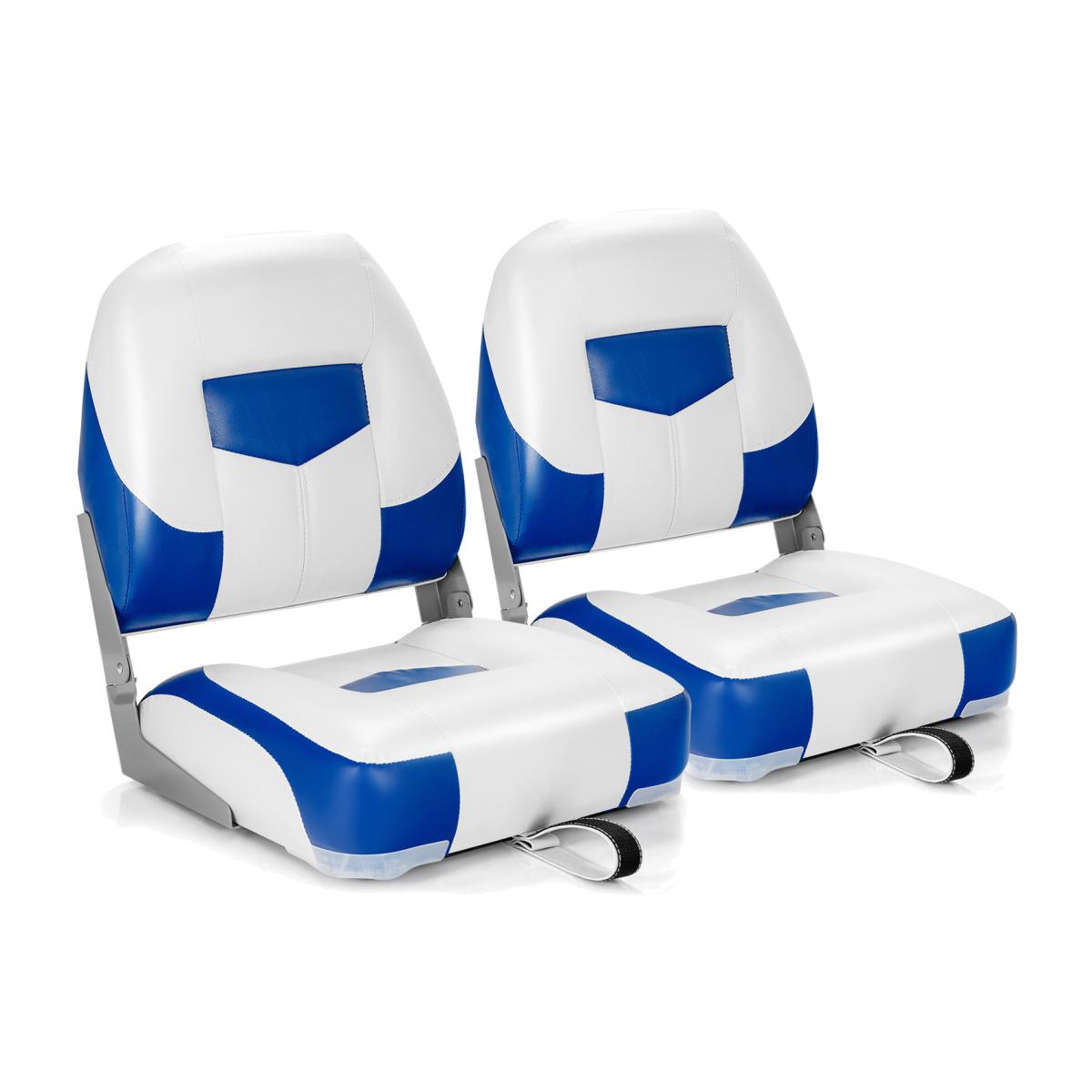 Description: Are you looking for a set of boat chairs? Our 2-pack boat seat set will be your ideal choice. The combination of blue and white makes this chair versatile for different kinds of boat styles. Besides, fully filled foam provides comfortable sitting experience, and waterproof PVC fabric well withstands rigorous marine environment. Curved backrest offers strong support to release back pressure after tired offshore activities. And this yacht chair can highly load up to 115kg. When the sea is not in use, you can fold it and fix it with the long strap for better storage. In addition, the chair assembly is ultra-easy to finish by reading the instruction carefully. And you can install it on the stand (not included) that can be any standard 4-bolt swivel or pedestal.