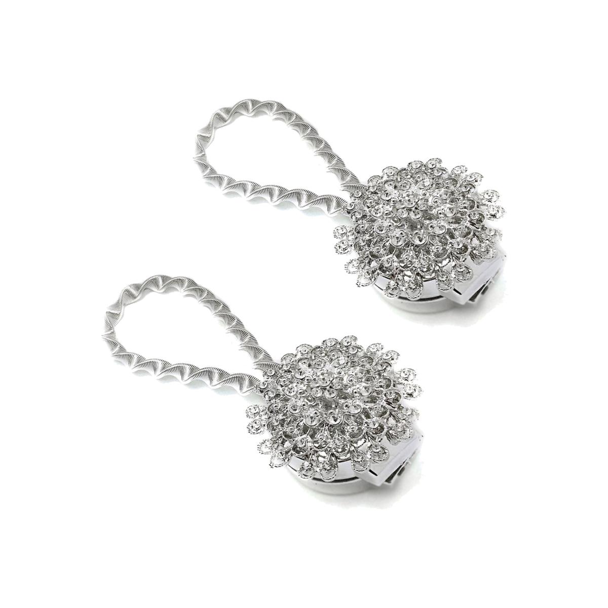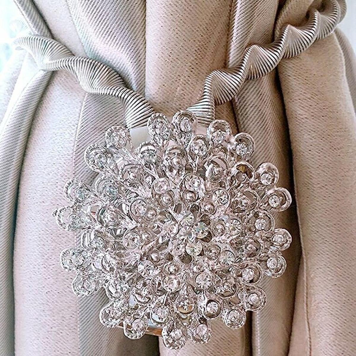 Magnetic curtain tiebacks are made of quality polyester, beautiful appearance and smooth, super thick. Styled magnetic discs that sport a tie-back strip in the middle of curtain buckle, The tie-back wraps around the curtain or drapes and the magnetic halves connect together holding the curtain in place without having to be connected to a wall. No need to drill holes in wall, hold your curtain back in seconds. Easy use and store, when you do not use, you could clip on the curtain, so easy to find and prevent loss. Flower diamond design, give a modern look to your curtains, very sparkle with classical flower type, really dress up your room. It is not only can be used to wrap around curtain panel, gauze shape curtain, door curtains, window curtains, valance, but can be a decoration for your home, living room, bedroom etc.