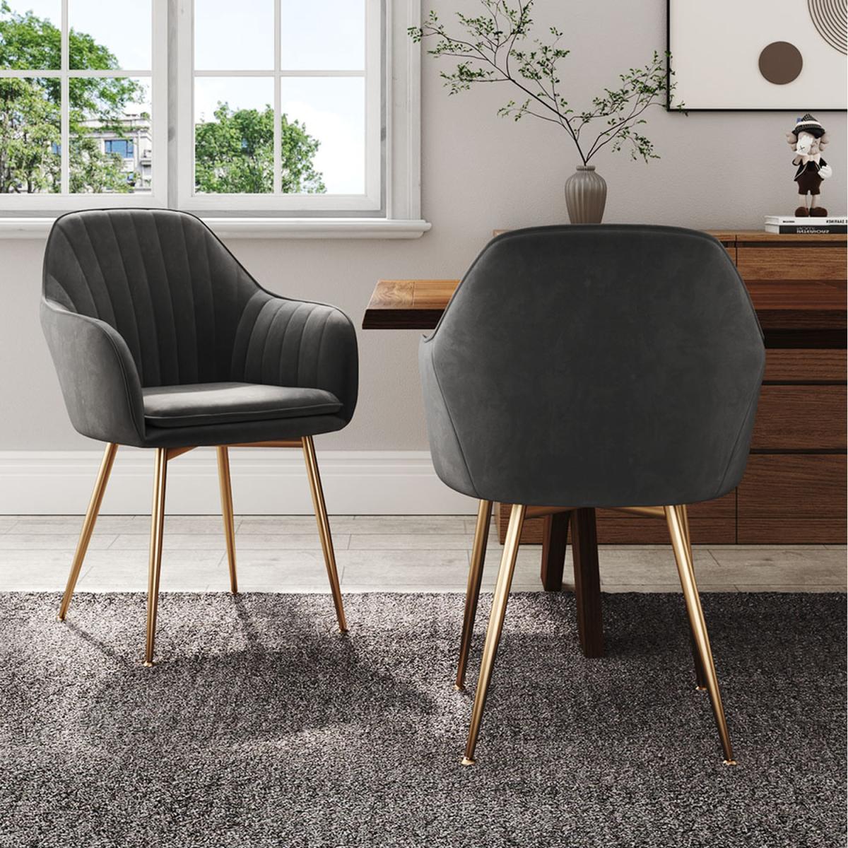 2Pcs Modern Velvet Dining Chairs with Gold Legs - Dark Grey