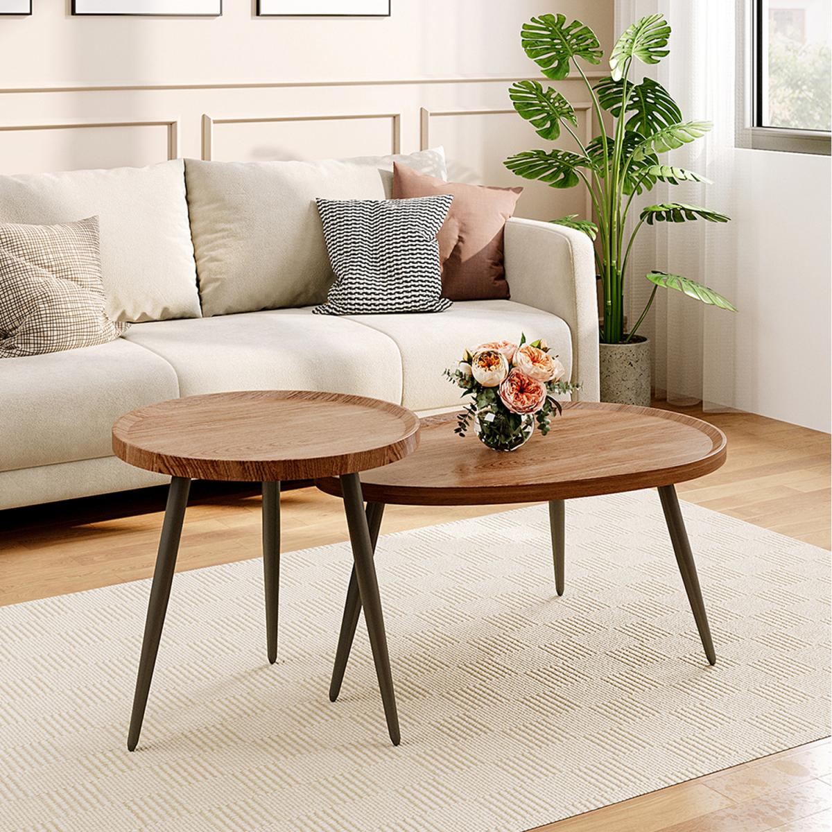 This unique drop-shaped and round coffee table set is the ideal accent for your living room. With its designer appeal, it provides a practical spot for magazines and a cup of tea. Both tables feature natural wood tray tops and black metal tapered legs, exuding an industrial vibe. Use them together for a cohesive look or separately for versatility. Regardless of how you style them, they fit seamlessly into any space.