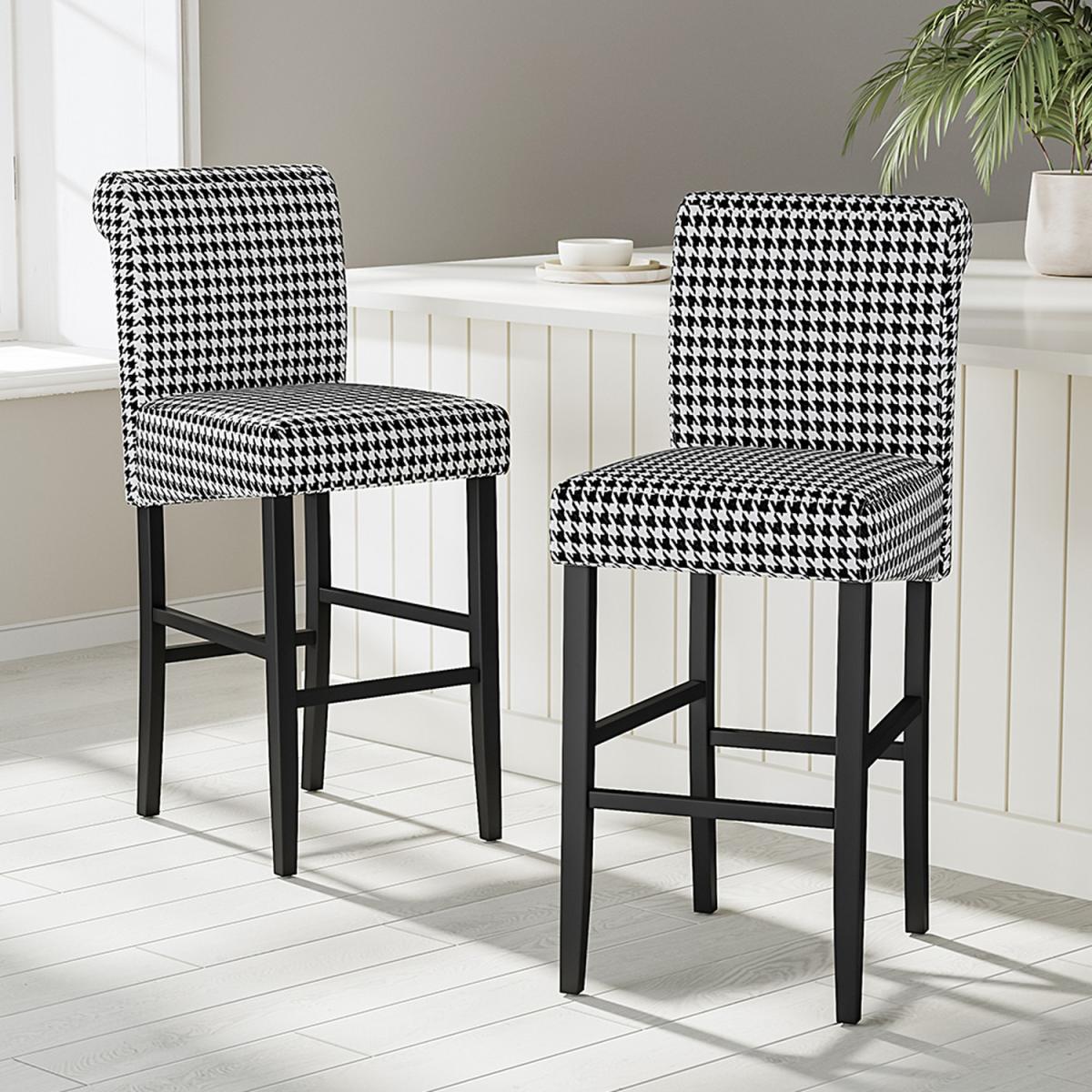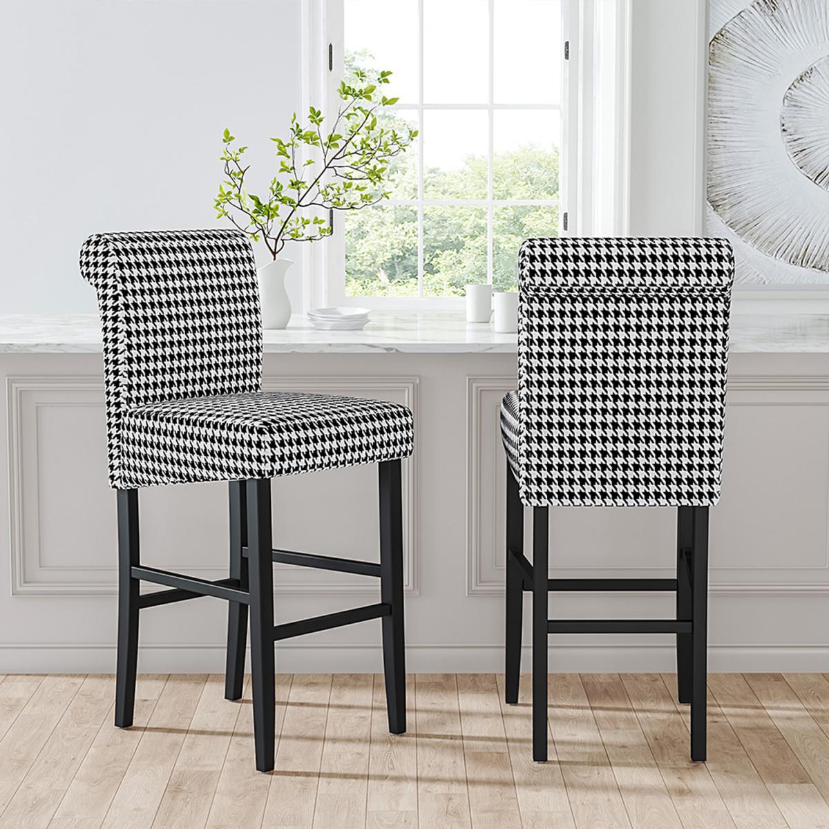 Made of linen-look fabric stretched on a durable solid wood frame with thick cushion. The seat and back are padded with high-density foam, The ergonomical backrest and a soft padded seat provide day-long comfort. Compared with hard bar stools, our upholstered kitchen stools are built for utmost comfort, thickened elastic foam for a firm feeling, which helps to relieve muscle fatigue and will not make you feel tired after hours of sitting. Flat package, but easy to assemble in minutes with the instruction provided. Suitable for commercial and domestic use, especially in bars, living rooms, kitchens, coffee shops, markets, coffee shops, counters, barber shops, offices, etc.