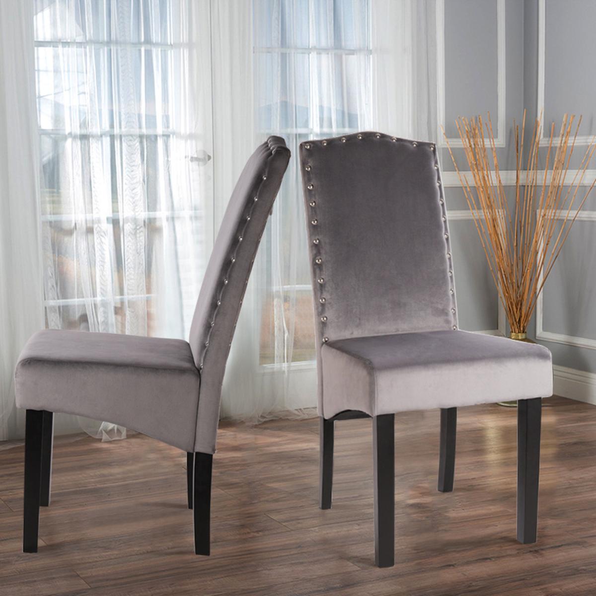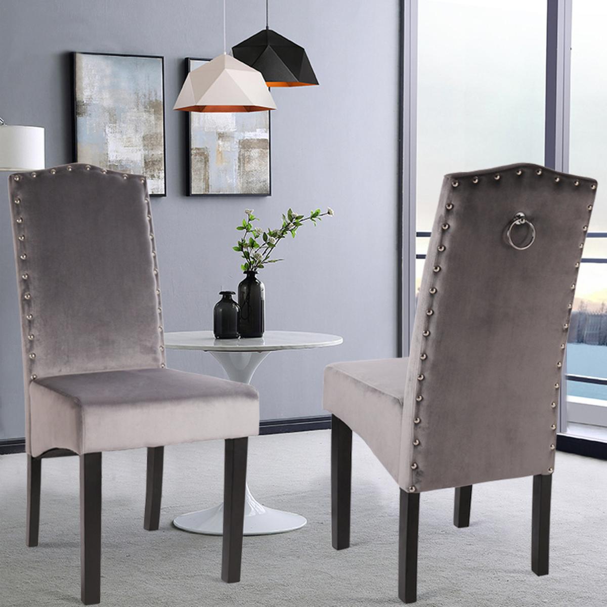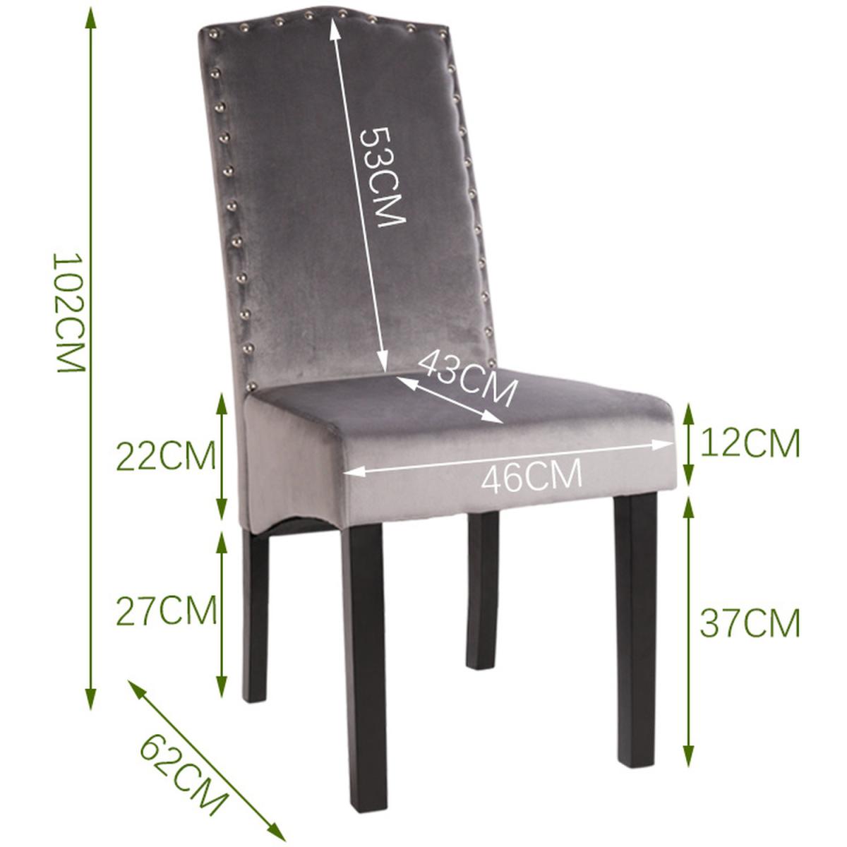 A timeless and stylish velvet dining chair, this stunning dining chair is made with durable fire retardant materials, sponge padding on the backrest as well as the seat to provide you with extra comfort. Selected materials, rubber wood legs make the table more load-bearing, comfortable high backrest allows you to fully relax every moment in the chair. A pull button back design and excellent studded edge detailing to provide that luxury look and feel. The modern, stylish and luxury studded dining chair which is sure to add style to your dining set. A practical additional home furnishing piece to any home.