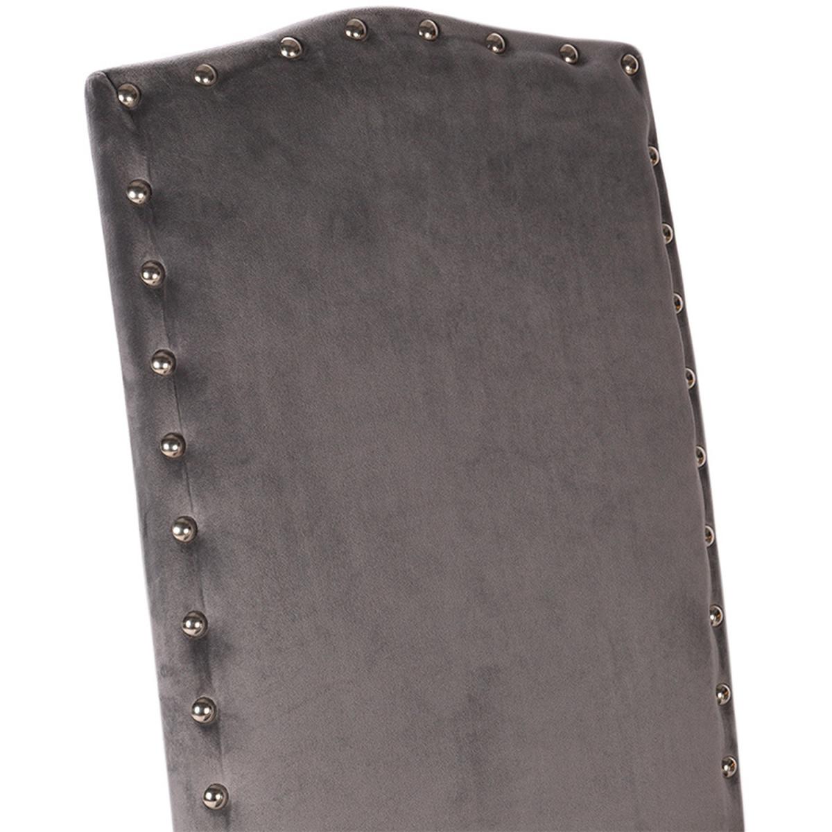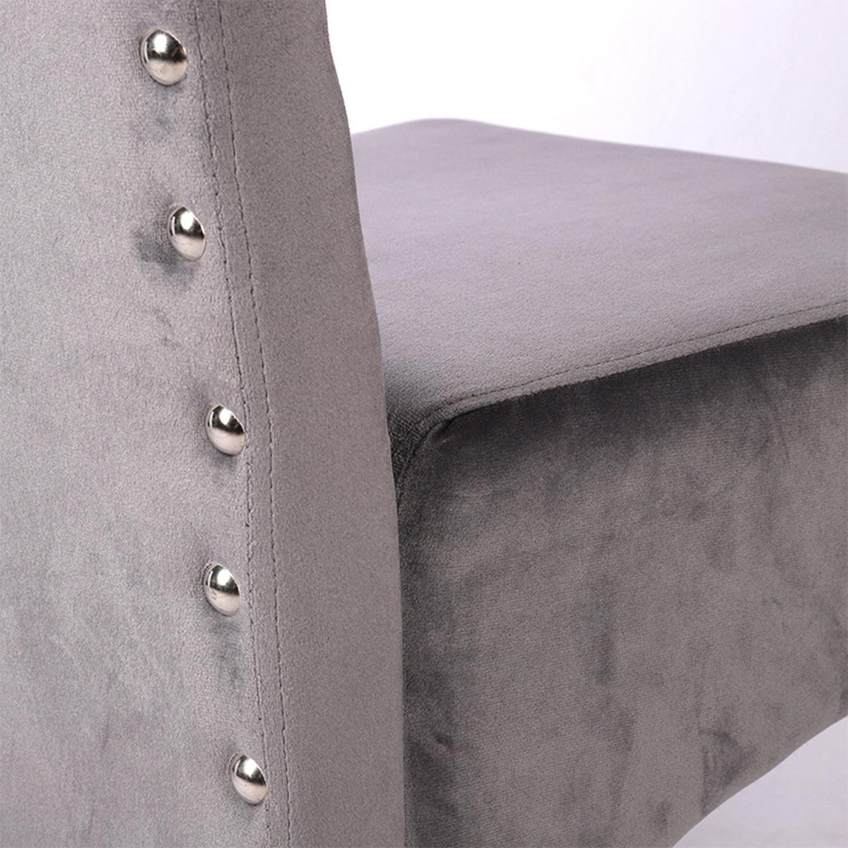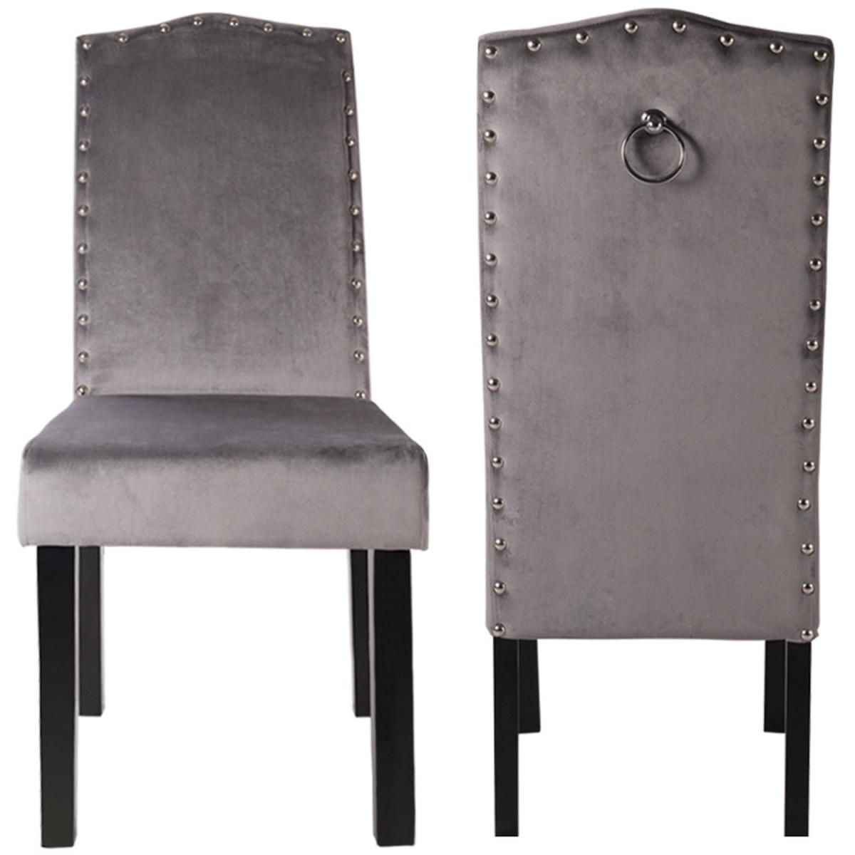 A timeless and stylish velvet dining chair, this stunning dining chair is made with durable fire retardant materials, sponge padding on the backrest as well as the seat to provide you with extra comfort. Selected materials, rubber wood legs make the table more load-bearing, comfortable high backrest allows you to fully relax every moment in the chair. A pull button back design and excellent studded edge detailing to provide that luxury look and feel. The modern, stylish and luxury studded dining chair which is sure to add style to your dining set. A practical additional home furnishing piece to any home.