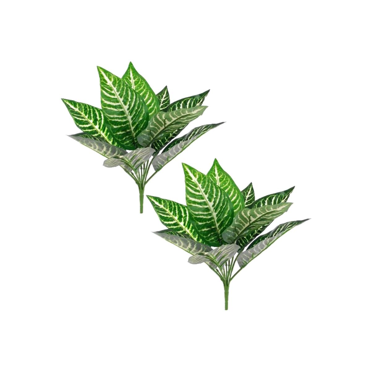2Pk Artificial Faux Dieffenbachia Plants with Green and White Leaves - Green