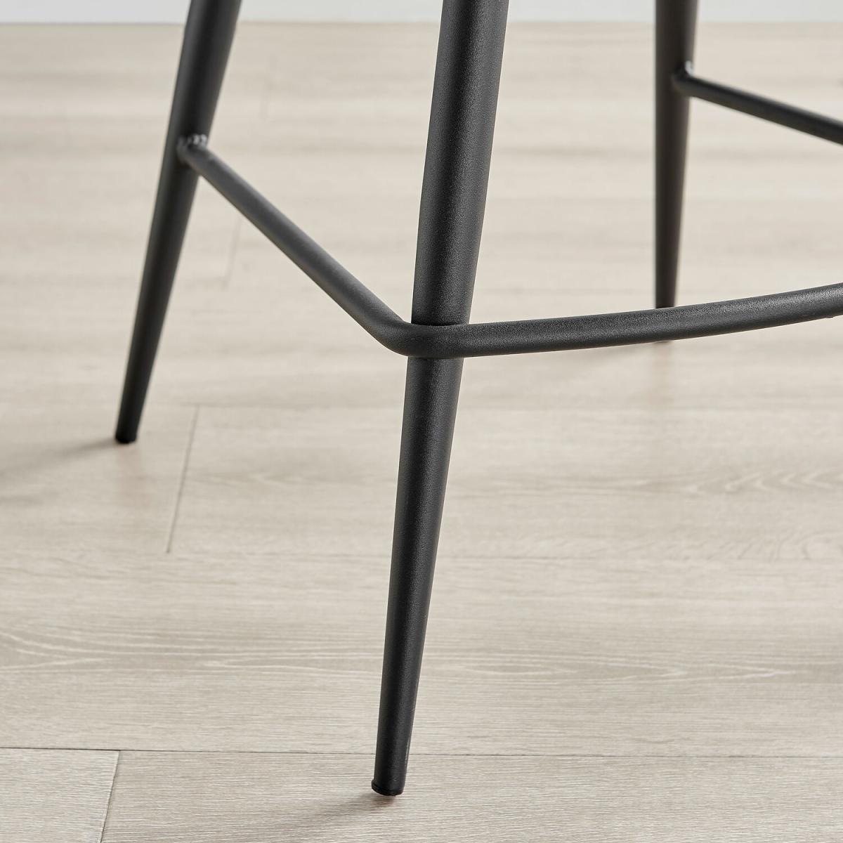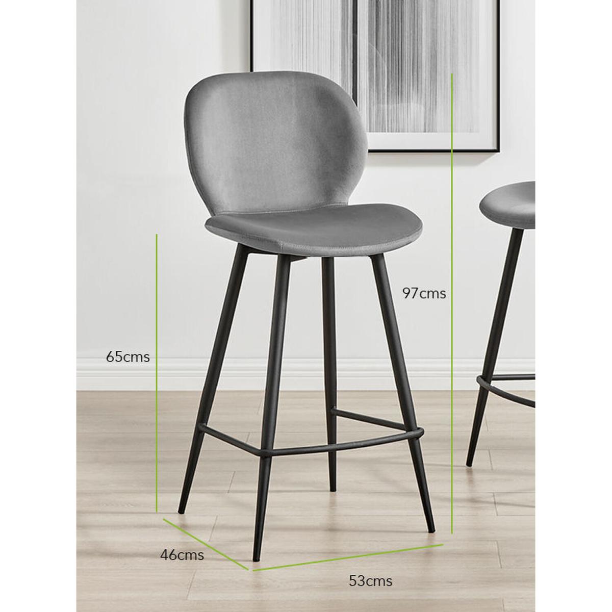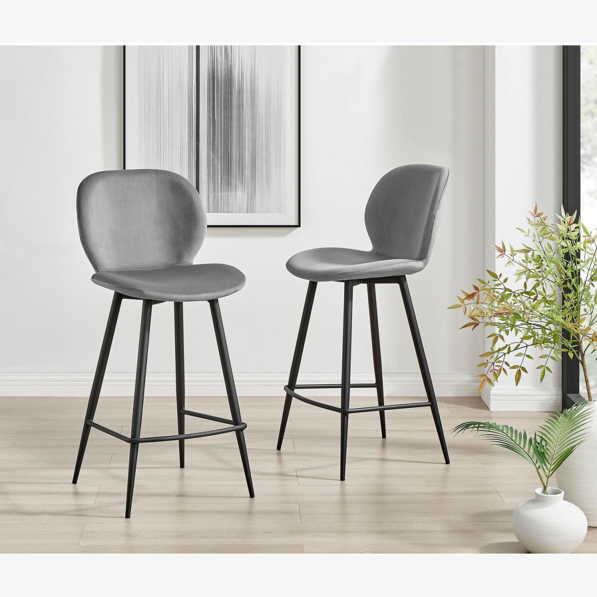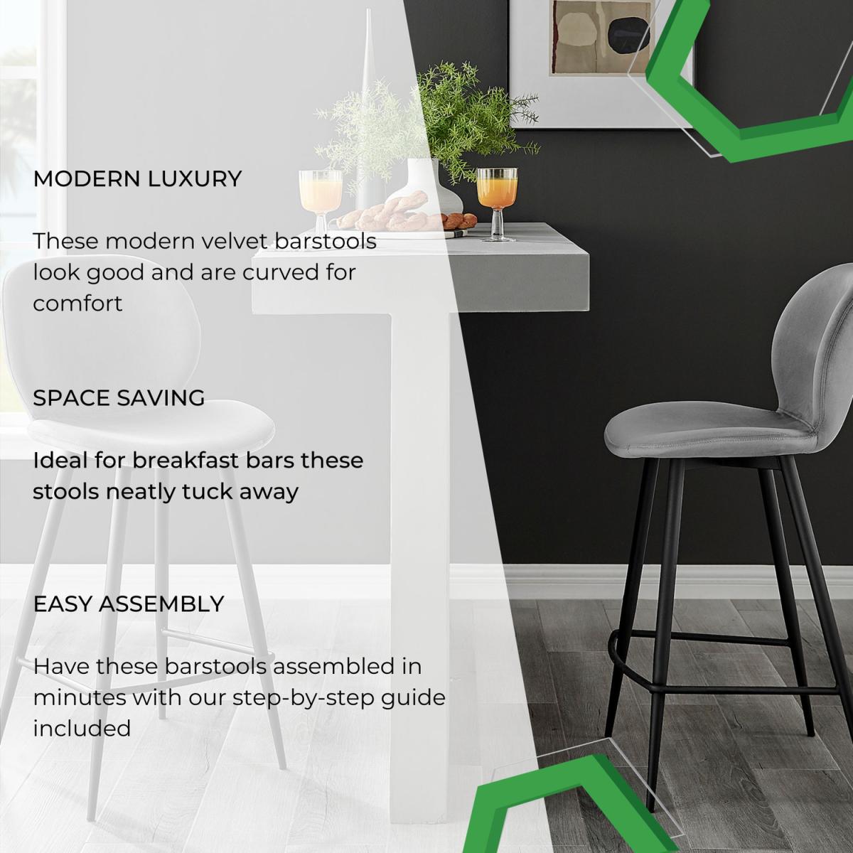 Our Arna velvet upholstered bar stool is simple and chic. Inspired by the classic Ant Chair design of the 50s but bought right up to date with on-trend velvet and tapered black legs with a bar foot rest. This would look great in a sleek minimalist or industrial home setting, or in a super modern neutral Scandi style home. Sumptuous soft-touch velvet with a lovely thick padded seat and an ergonomic design will make sure you're comfortable while sitting in style. Available in a range of other fabric colours!