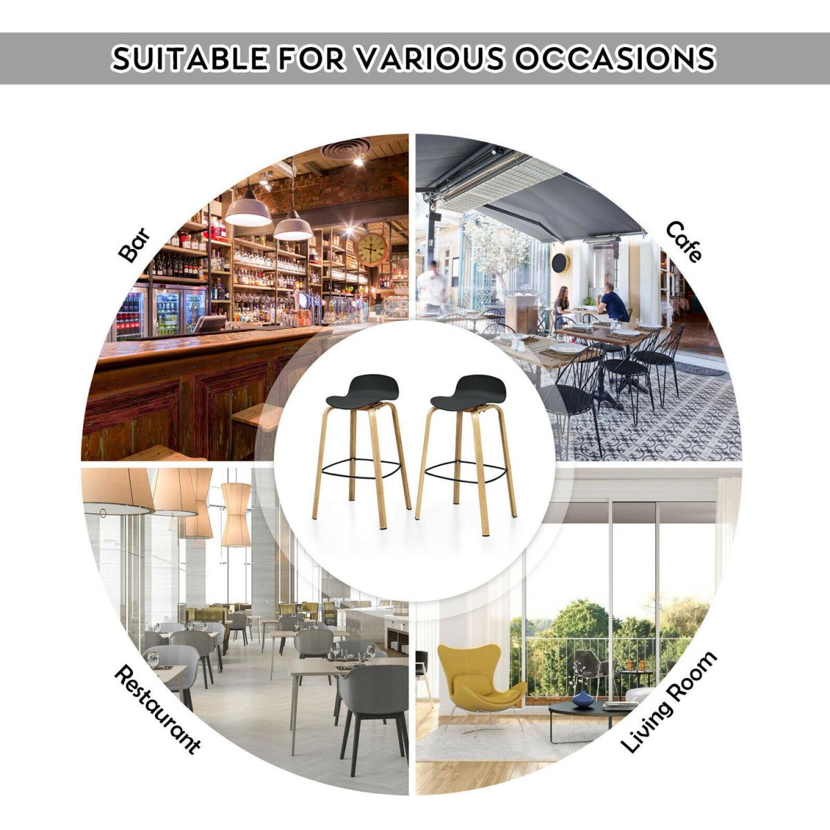Are you looking for a comfortable and eye-catching pub stool? Our modern bar chair is your ideal choice! This set of 2 bar stools is the perfect combination of fashion and modernity, and it is suitable for pubs, kitchens, restaurants, reception rooms and coffee shops. Made of high-quality PP material, this chair set allows you to use it for a long time without deformation. The solid metal frame with no-slip foot pads not only provides you with strong support but also protects the floor. Besides, the pub chairs are designed with durable and low-profile backs for super comfort. Spend your free time in this comfortable chair!
