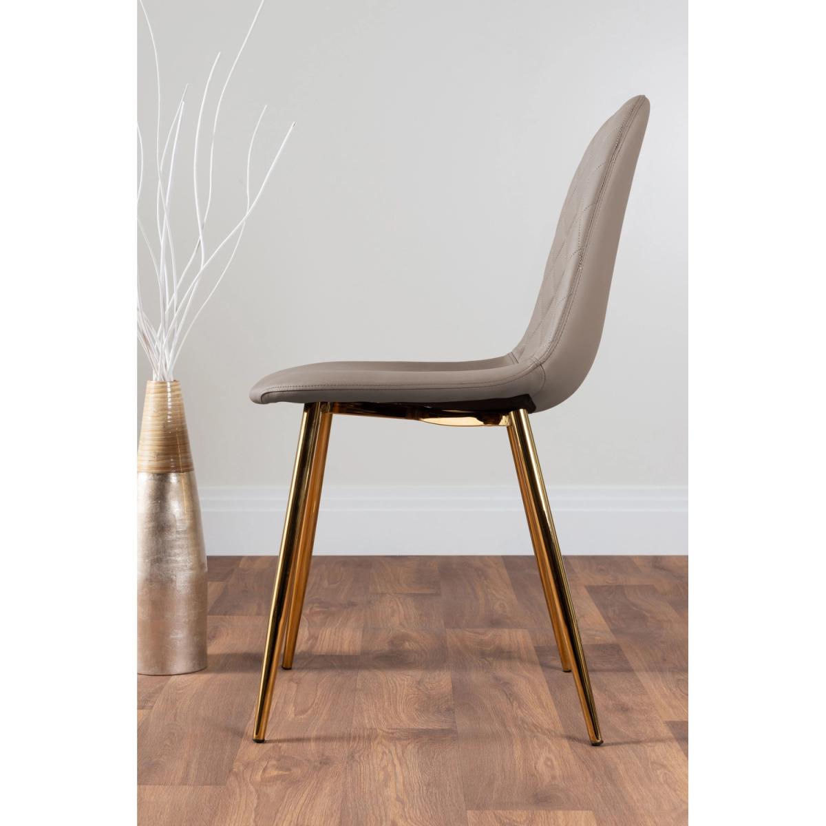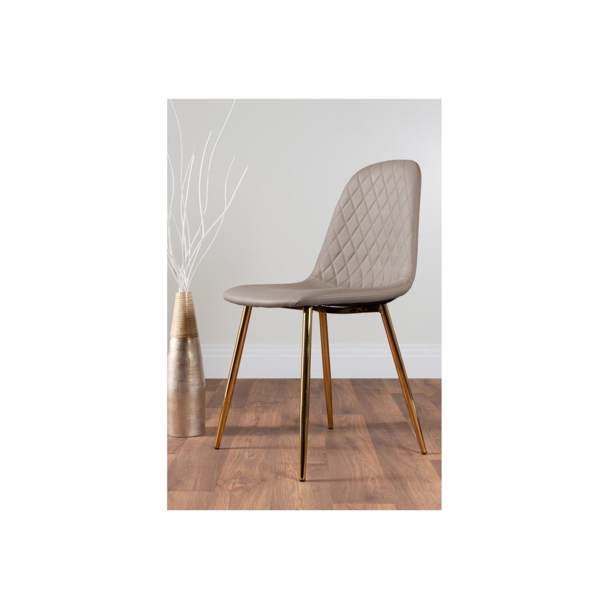 With a perfect balance of pattern and texture, the new Corona Chair is a statement piece ready for the modern dining space. The trendy gold legs are all the rage and offer a perfect way to add an accent of lustre to your home. The Scandi-style faux leather seat with diamond pattern stitching is a unique take on a classic design offering comfort and durability for everyday use.
