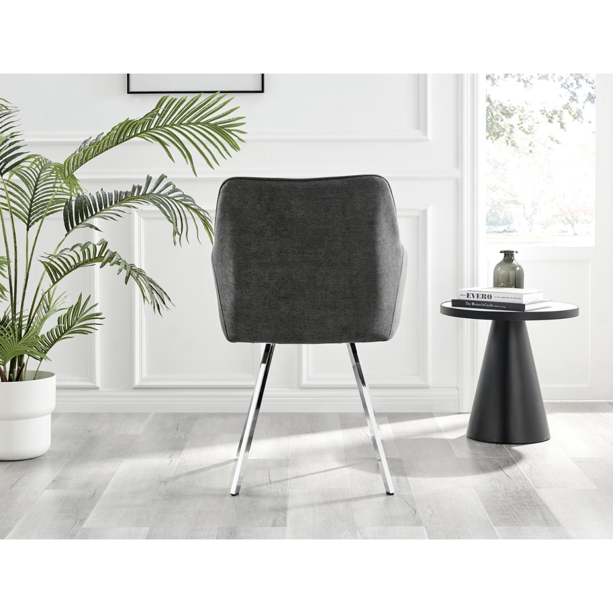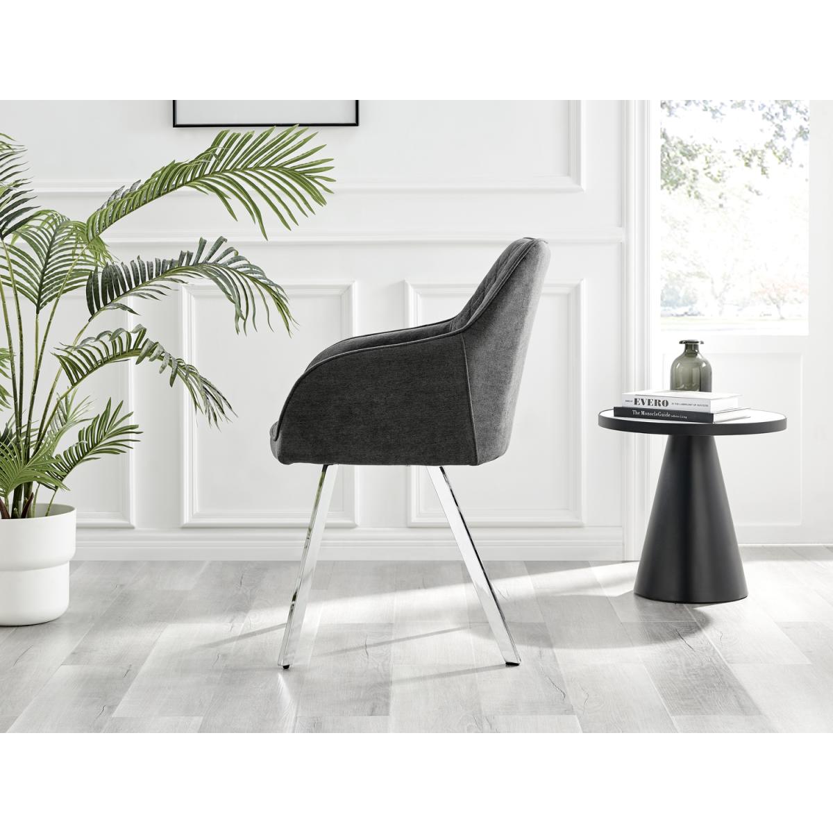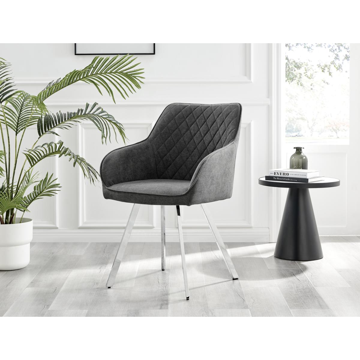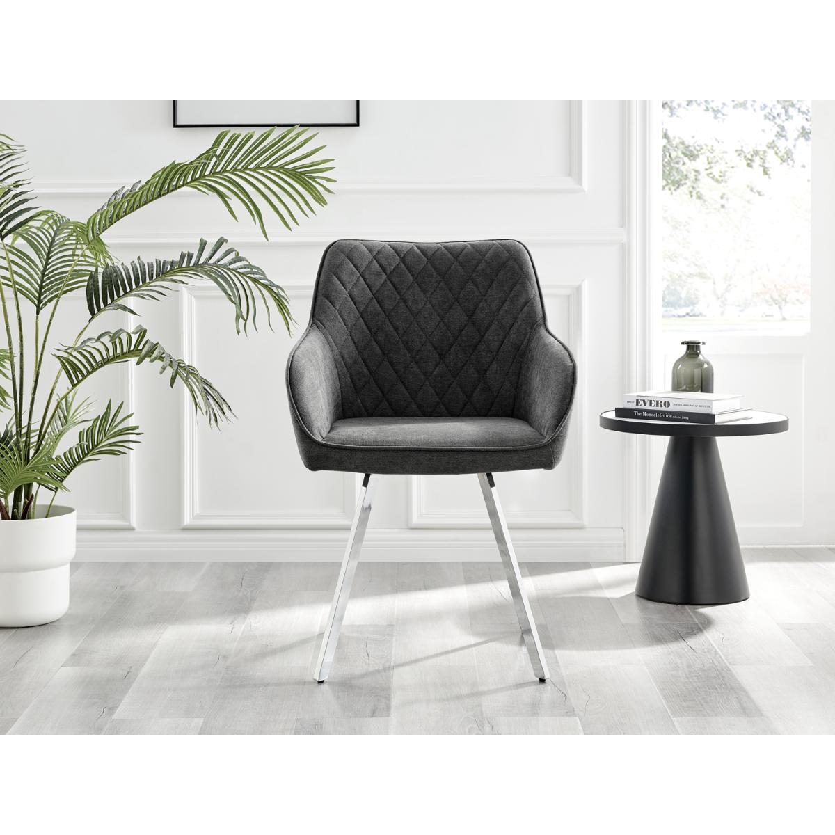 The Falun dining chair is a modern carver chair design with quilted diamond stitching to the inside. Comfortable and super-stylish, with postmodern midcentury touches, the chair's combination of curves and straight lines keeps it fresh and eyecatching. Sat on elegant angled legs, this chair will suit any modern decor. The rich blue fabric of this dining chair adds a pop of subtle colour to your room. For an ultra modern touch on your dining set, choose this silver chrome leg design which beautifully compliments the rest of the dining chair design.
