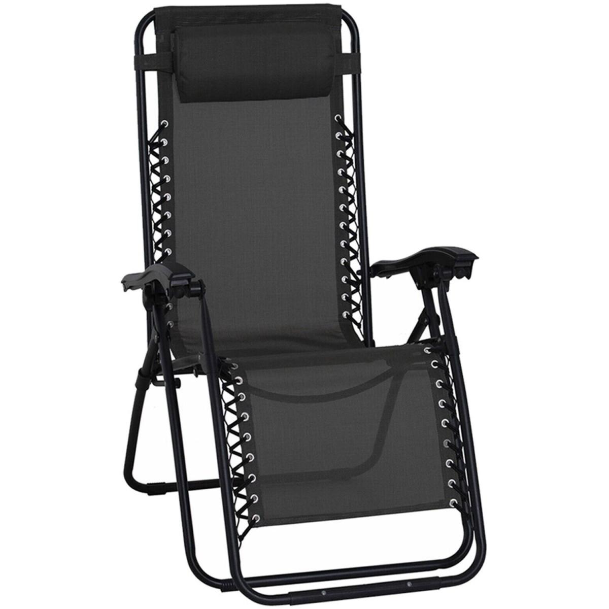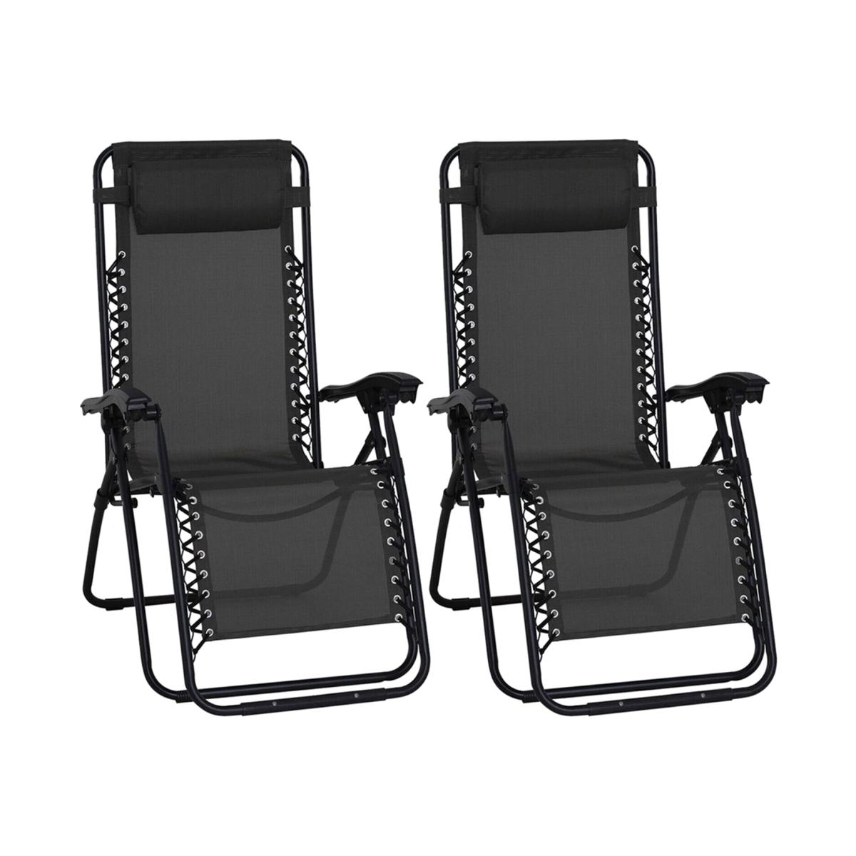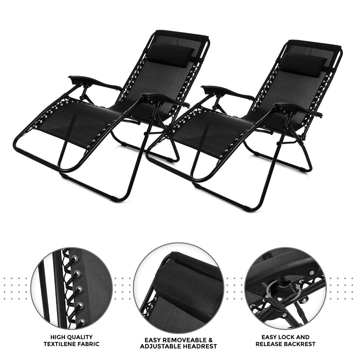 2X Foldable Portable Sun Loungers Garden Outdoor - Black
