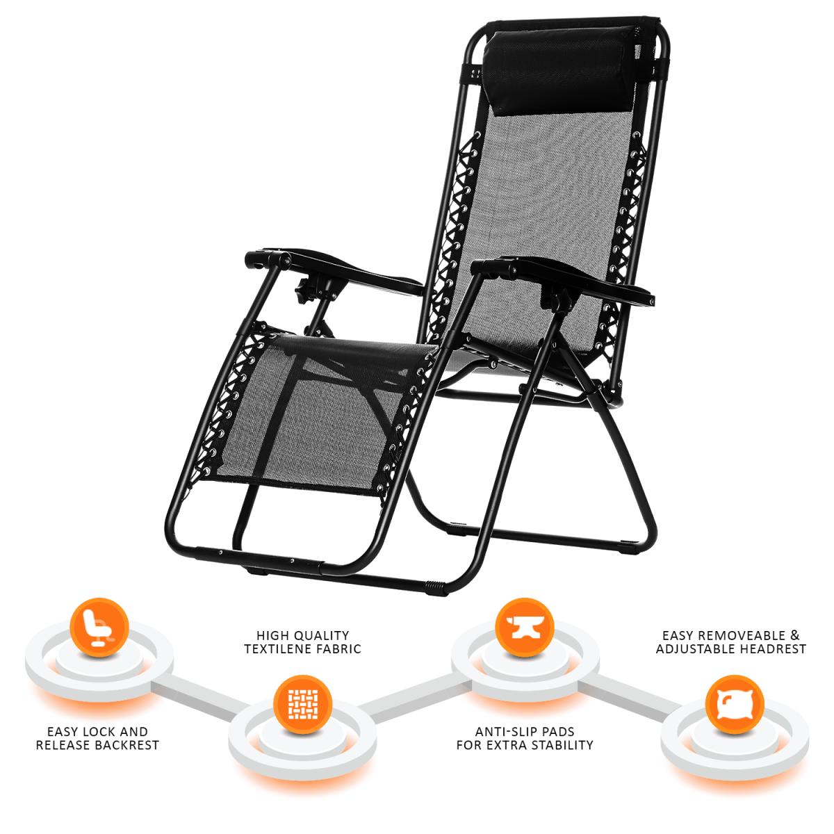 This is the high quality set of two Textoline Reclining Chair is incredibly comfortable, durable and folds down flat for easy storage. It also comes with a powder coated tubular steel frame and easy locking mechanism. Ideal for relaxing time on garden, beach and camping...
