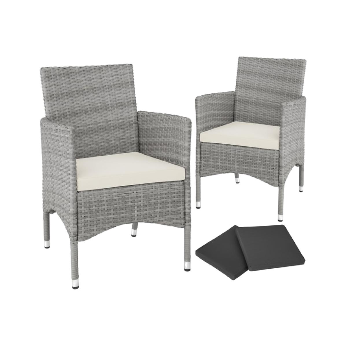 These comfortable rattan garden chairs from tectake are perfect for enjoying relaxing hours in your garden. Thanks to the low weight of the outdoor chairs, the furniture can be easily transported or positioned how you please. The assembly process is quick and simple, which is also convenient for disassembly and storage of the chairs during the winter months. The comfortable polyester seat cushions are perfectly colour coordinated with the rattan set and feature a zipper on the back, meaning the covers can be removed, allowing for easy cleaning and you can easily store them. To protect the padding from water, the surface is impregnated, meaning drops of dirt and water simply roll off. The sets two chairs are of a standard height meaning they can easily be combined with a table and other accessories to enjoy an outdoor dining experience in the comfort of your own home. Enjoy the summer sun outdoors with these garden chairs from tectake.