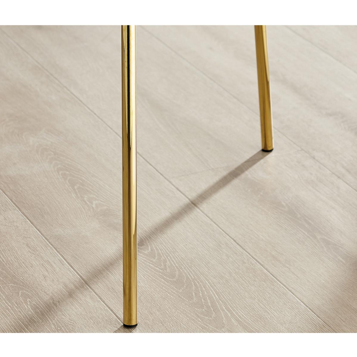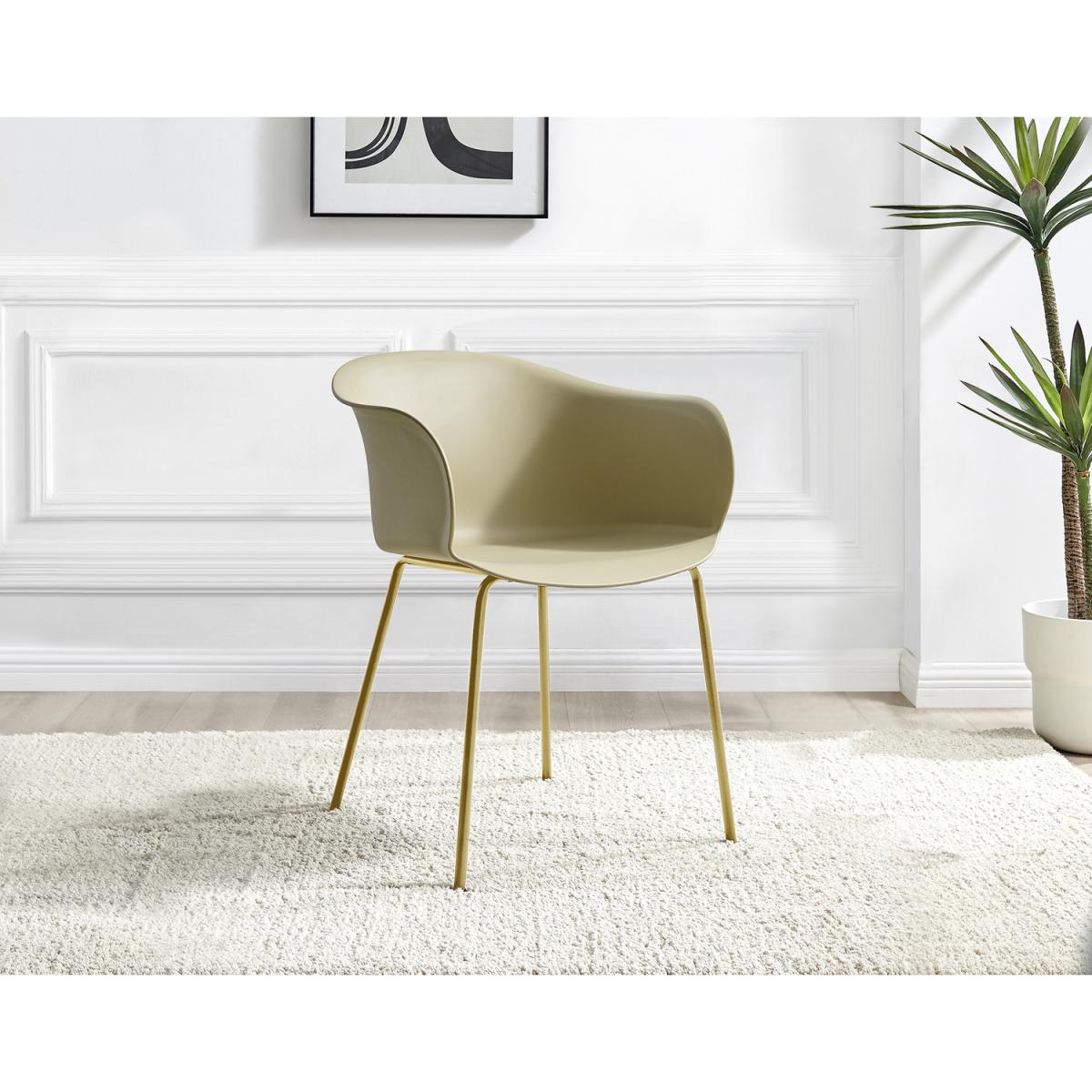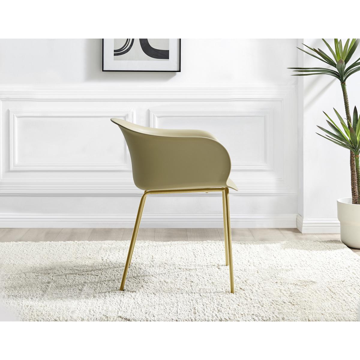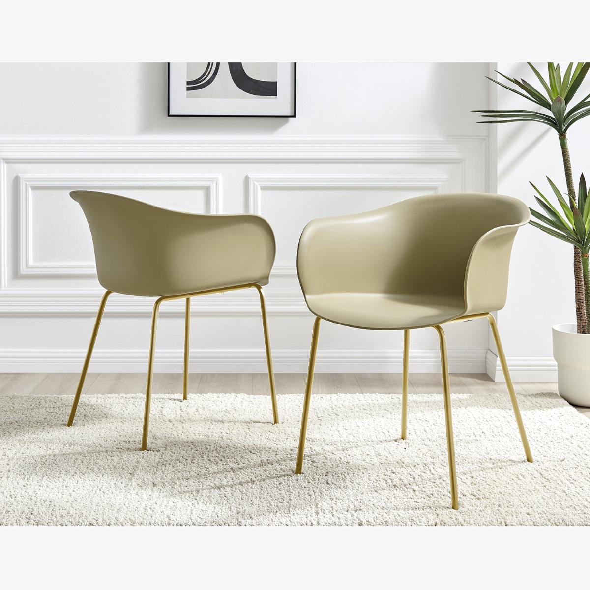 Our Harper dining chair is the perfect blend of elegance and minimalist design. A modern low back and wide seat with a gentle curve for relaxed dining without compromising on style. This design is inspired by organic natural shapes and ticks all the dining room trend boxes we've been seeing emerging from Italy. The Harper will look great with a range of table styles and finishes from wood to sleek glass, making it really versatile too! Sturdy pre-formed plastic seat with strong but slimline powder-coated shiny gold metal legs. Available in a range of other colours and also with matte black metal legs, so check out the full Harper range.