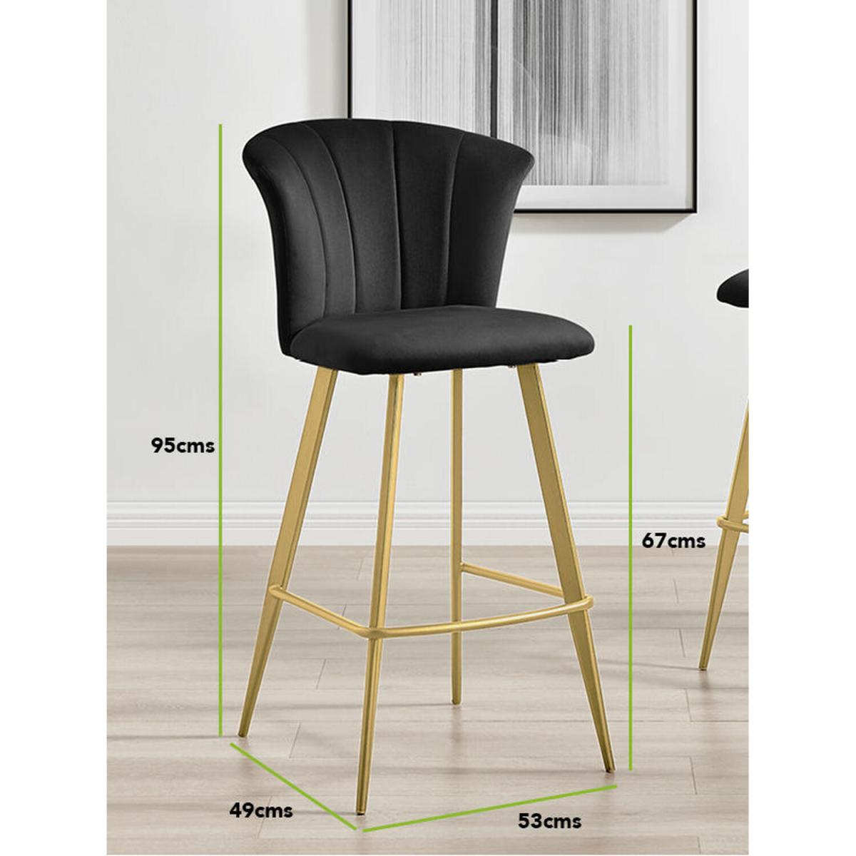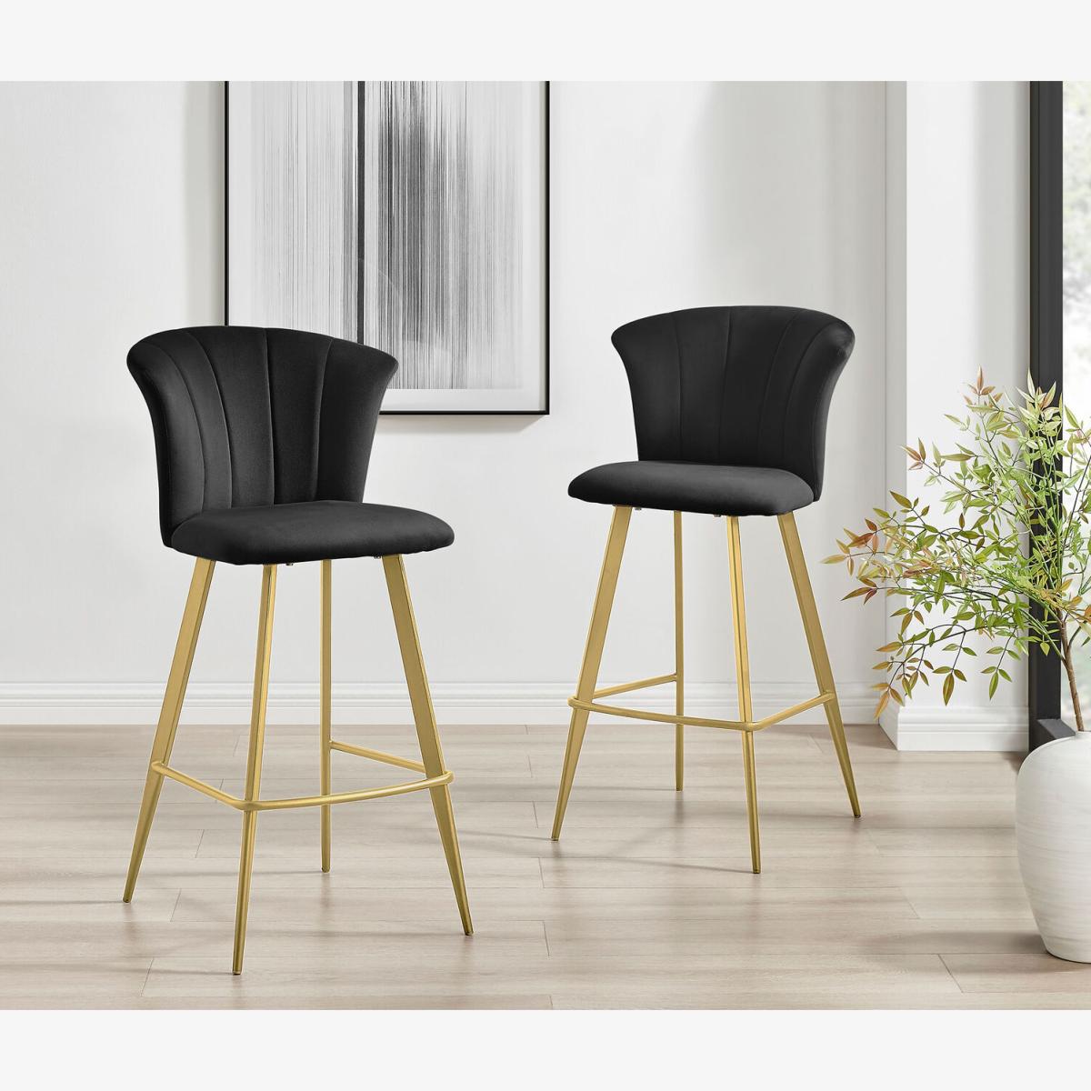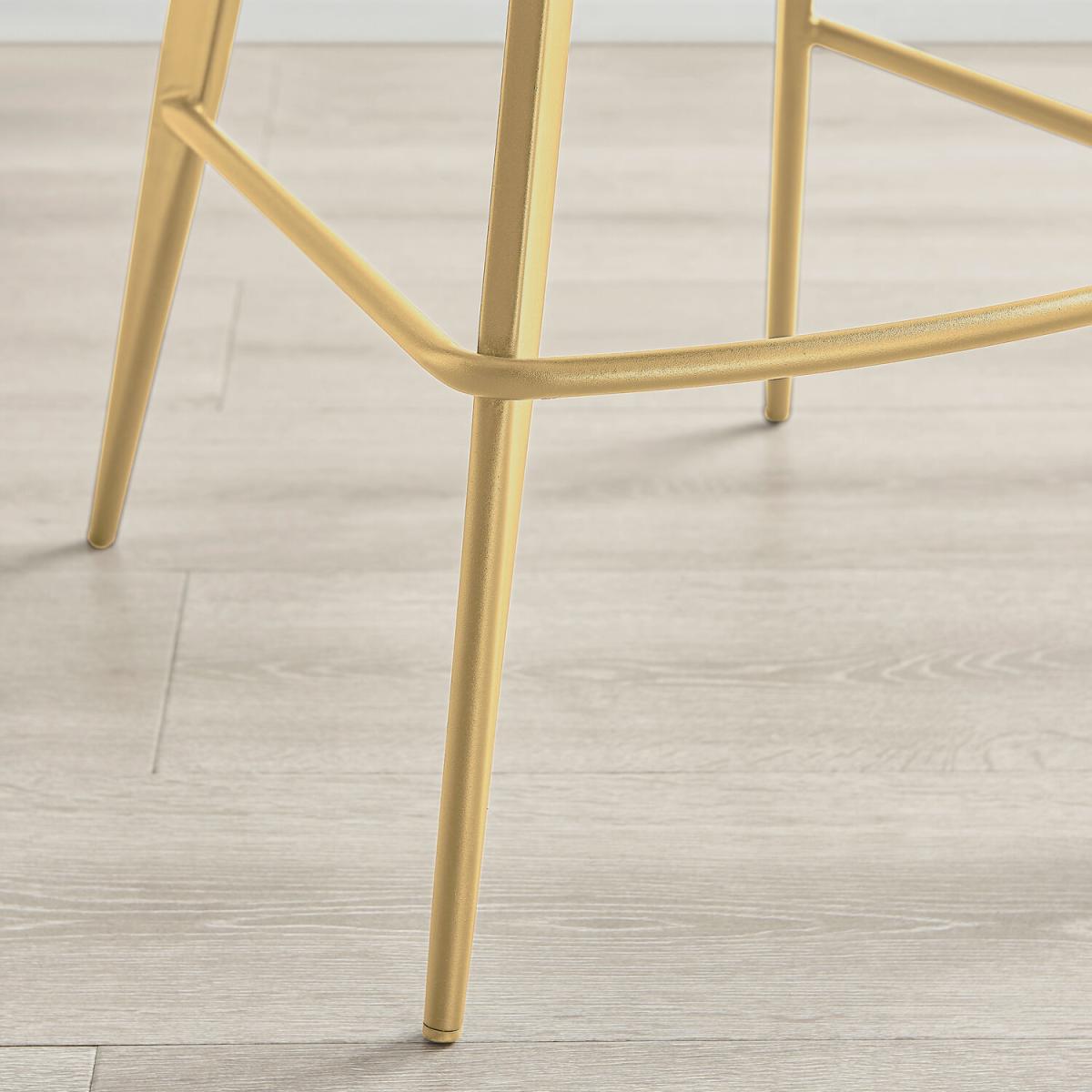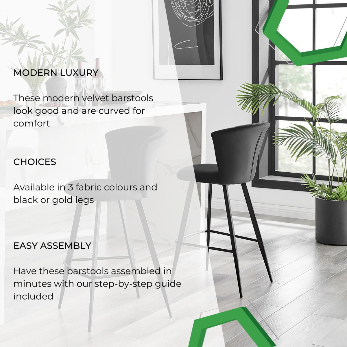 Our Juniper velvet-upholstered bar stool is elegant and stylish. The fluted backrest and vertical stitching give it a 1920s Art Deco vibe and the tapered gold metal legs with bar foot rest keep it super modern and bright. This would look great in a maximalist glam or industrial home setting, or even injecting a pop of colour into a more neutral home style. Sumptuous soft-touch velvet with a lovely thick padded seat and an ergonomic design will make sure you're comfortable while sitting in style. Available in a range of other fabric and leg colours!