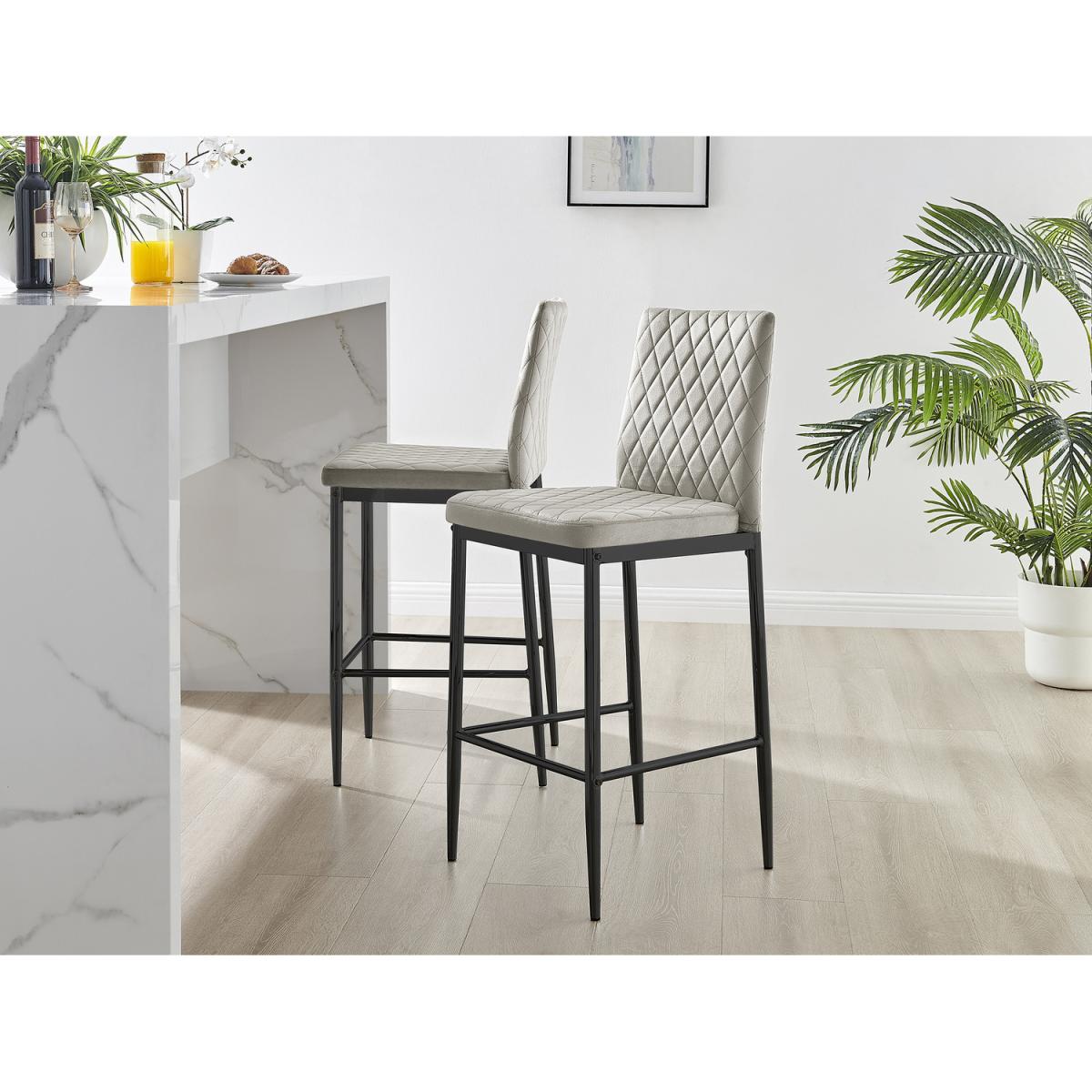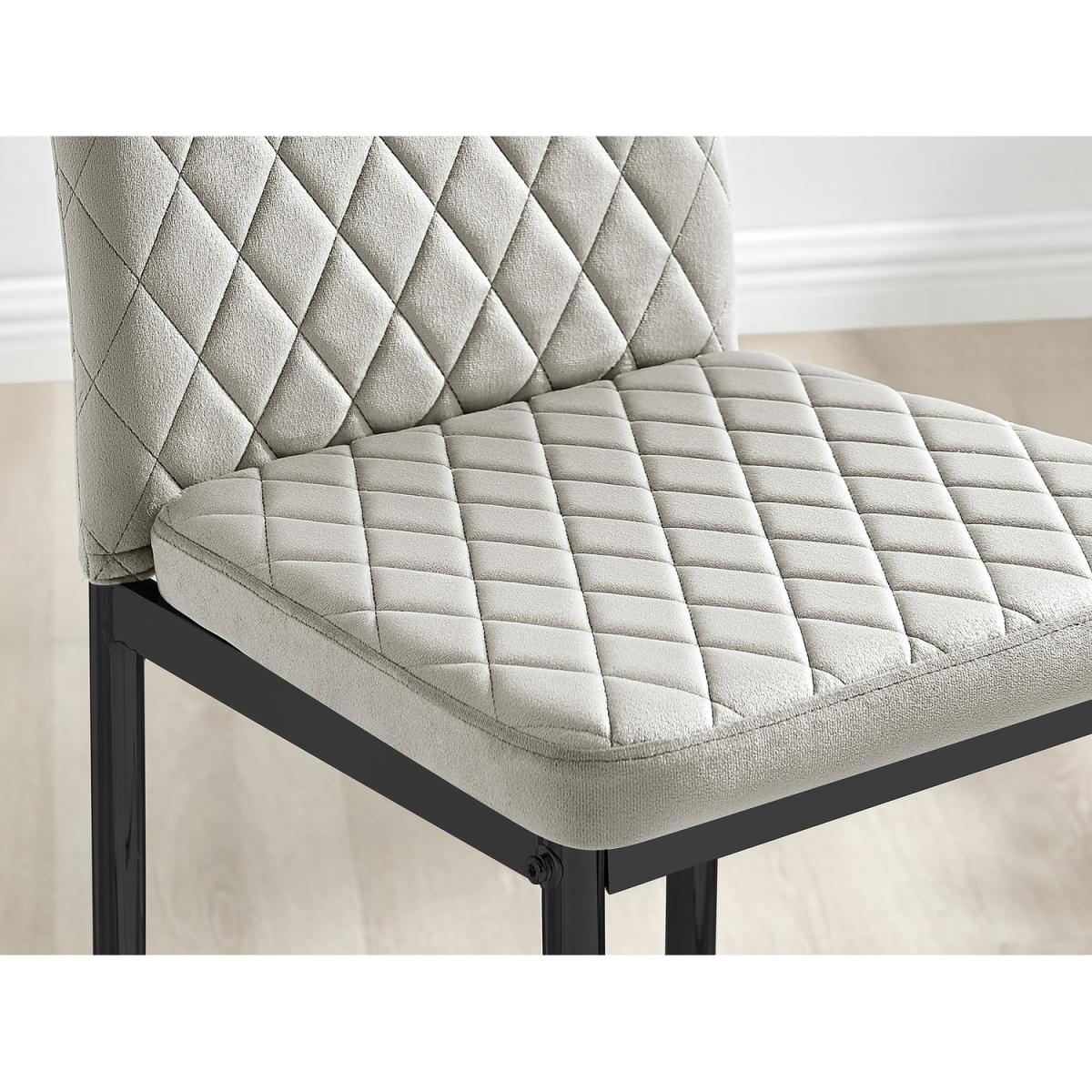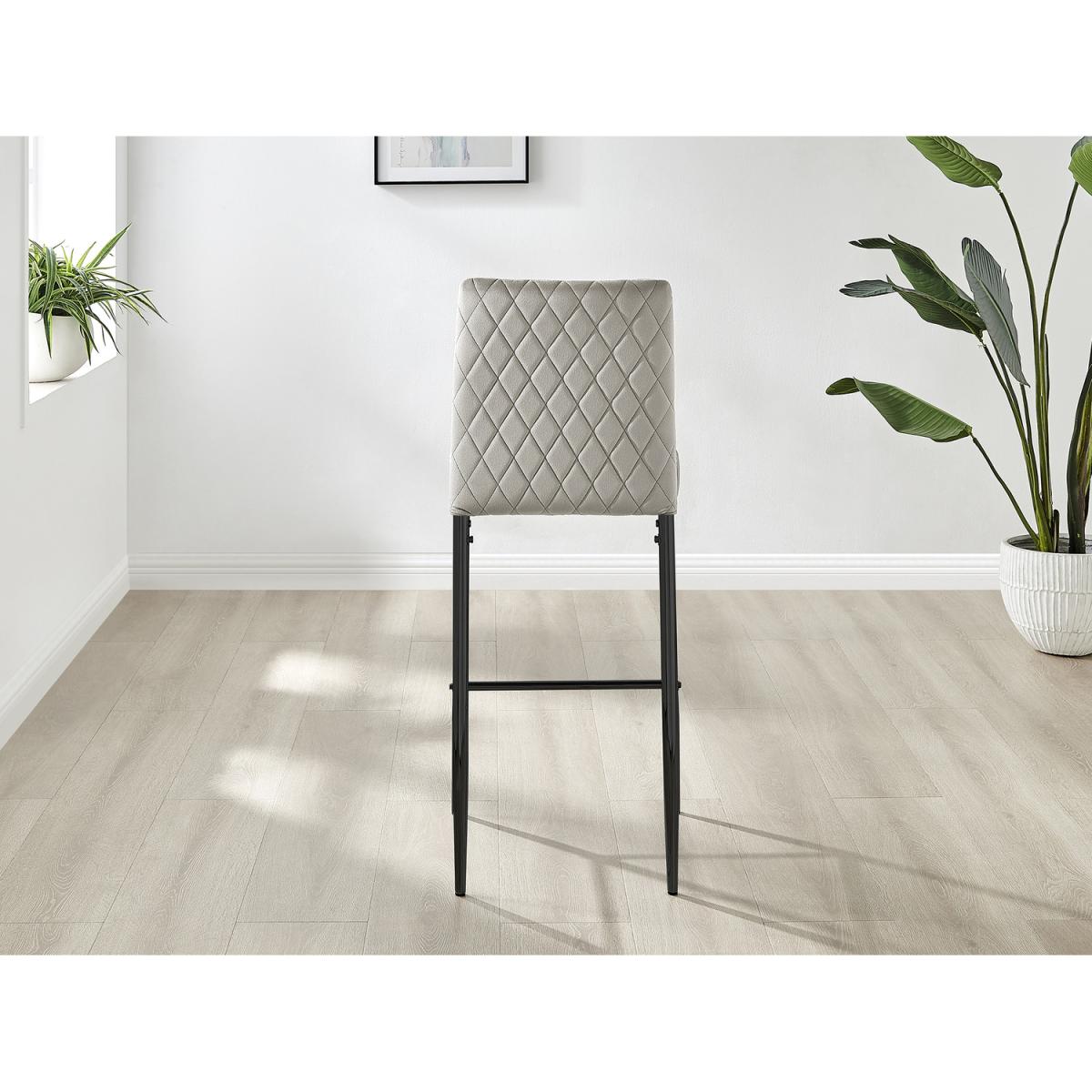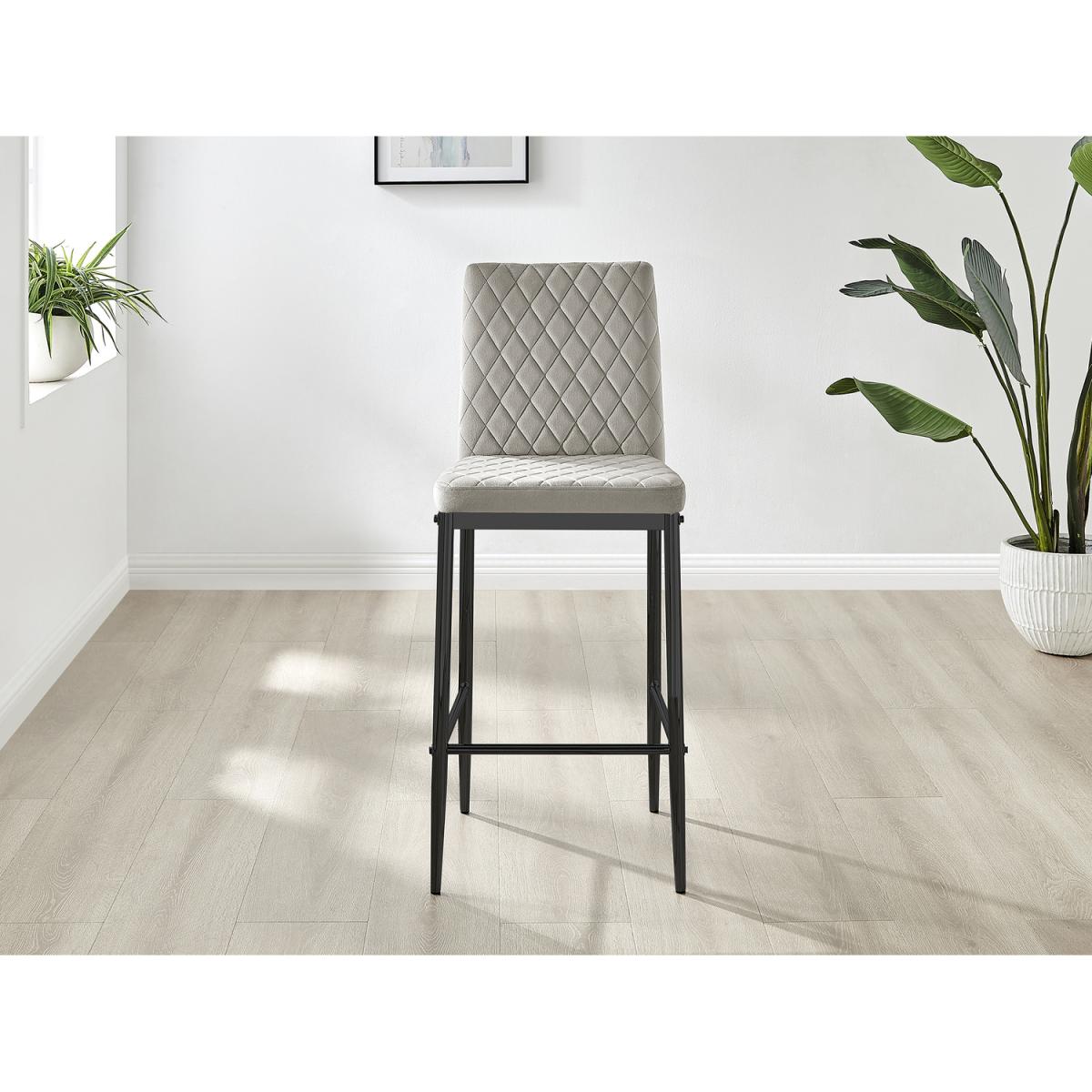 Upholstered in soft touch velvet and finished with diamond pattern stitching the Milan bar stools would seamlessly fit in with most dining spaces, whilst not compromising on either style or comfort. The stylish black powder coated metal leg and hatched velvet combination gives this chair a contemporary edge, whilst it's simple design allows for practical everyday usage. The chairs are made from high quality durable velvet that's easy to keep clean and are ergonomically designed for maximum comfort and support. They feature a deep foam seat cushion and plastic feet to protect the floor from any damage! At an unbeatable price you cannot go wrong with these chairs!