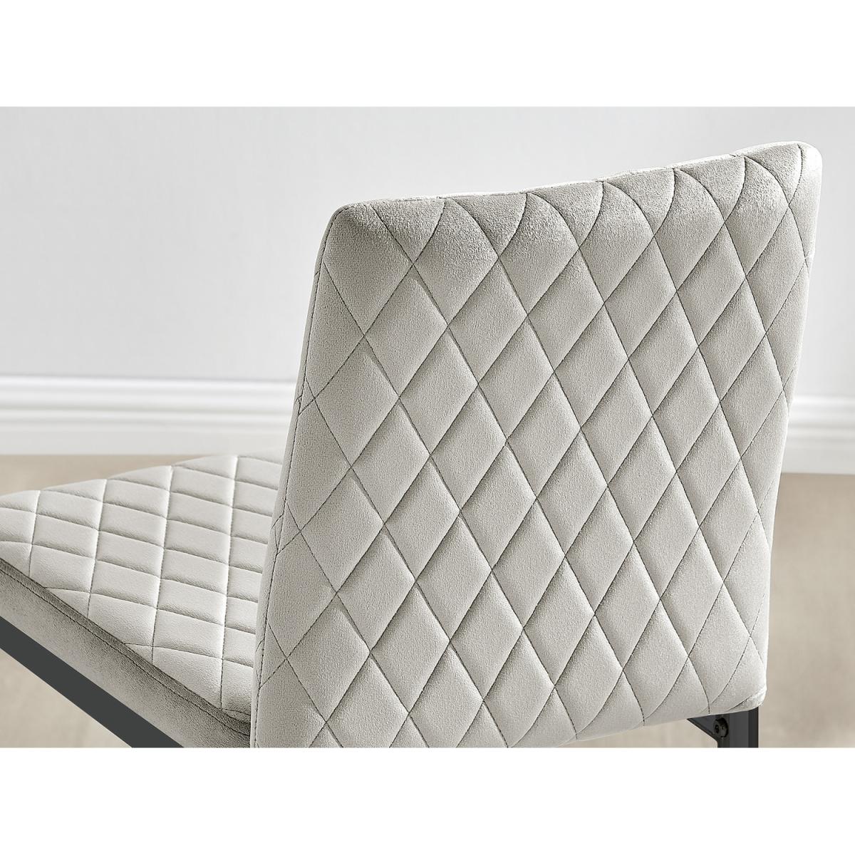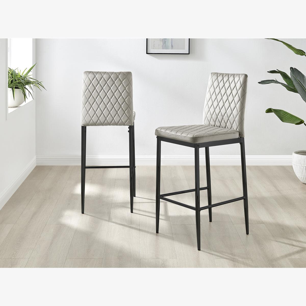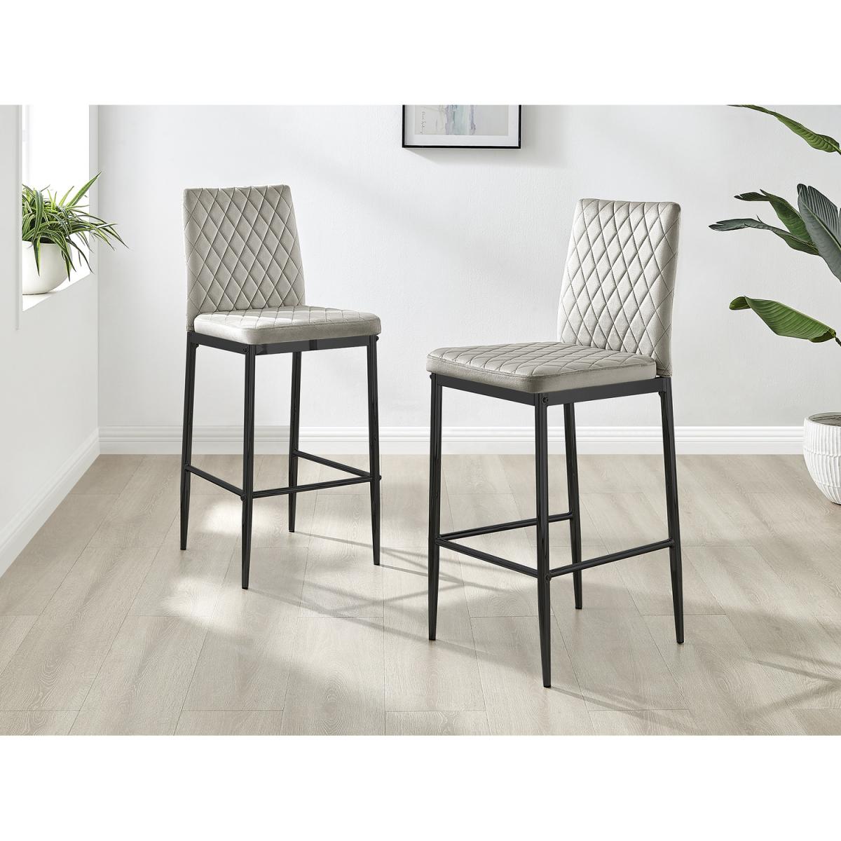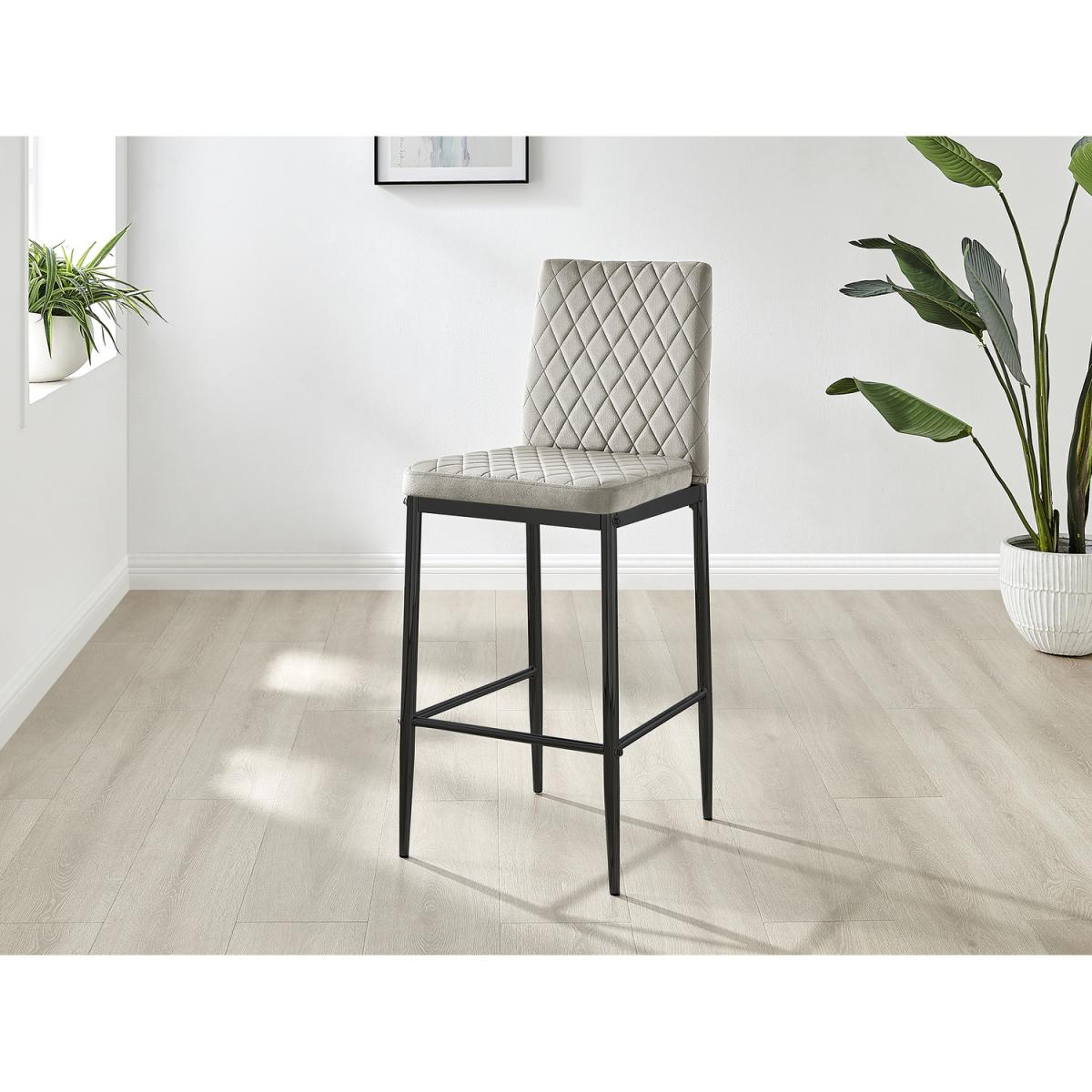 Upholstered in soft touch velvet and finished with diamond pattern stitching the Milan bar stools would seamlessly fit in with most dining spaces, whilst not compromising on either style or comfort. The stylish black powder coated metal leg and hatched velvet combination gives this chair a contemporary edge, whilst it's simple design allows for practical everyday usage. The chairs are made from high quality durable velvet that's easy to keep clean and are ergonomically designed for maximum comfort and support. They feature a deep foam seat cushion and plastic feet to protect the floor from any damage! At an unbeatable price you cannot go wrong with these chairs!