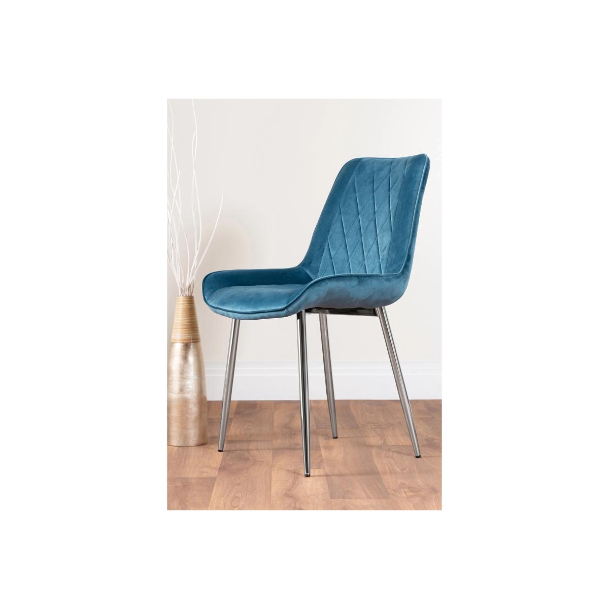 Modernise your dining area with our luxurious velvet upholstered Pesaro Dining Chairs. With a nod to the Mid-century modern design era, the Pesaro features gorgeous textured diamond stitching with an ergonomically designed curved seat pad blending seamlessly to the supporting medium high backrest. Sat atop elegant slightly tapered legs in black, chrome or gold effect. The Pesaro is a perfect match to any dining table or use as a luxe vanity seat in the bedroom, as an occasional chair for the living area or to add a bit of luxury to your home office.