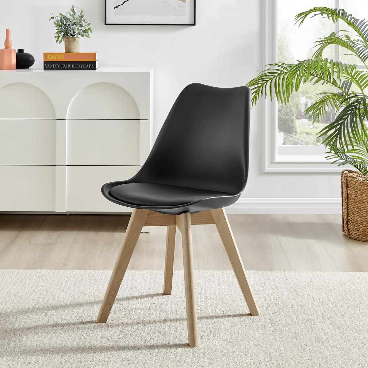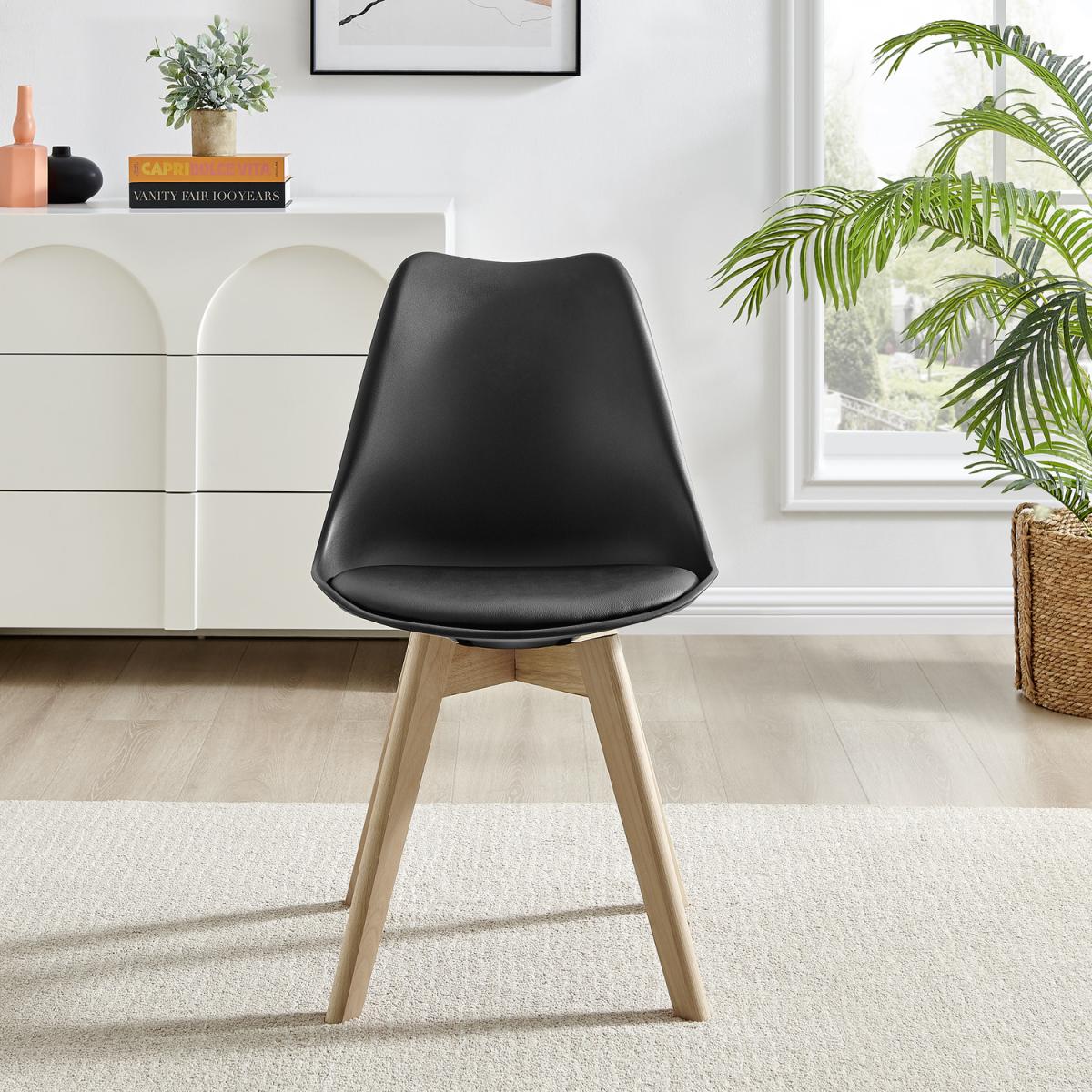 Our Stockholm chairs are all about that stripped-back chic Scandi vibe. The simple wooden angled legs look great paired with the faux leather chair and creates a stunning bright and breezy dining chair that will add some modern minimalist touches to your home and dining area. These chairs are the perfect combination of comfort and original style, suiting almost any wooden dining table. Ergonomically curved chair backs perfectly adapt to the shape of your body providing brilliant comfort. The wooden legs not only add to the aesthetic, but provide stability for use in a variety of environments. Our designs are fantastic value for money and are sure to give any dining room a touch of class, or make a great one off style statement. Also available in a range of other colours so check out the full Stockholm range today!
