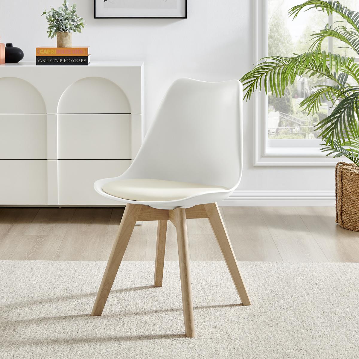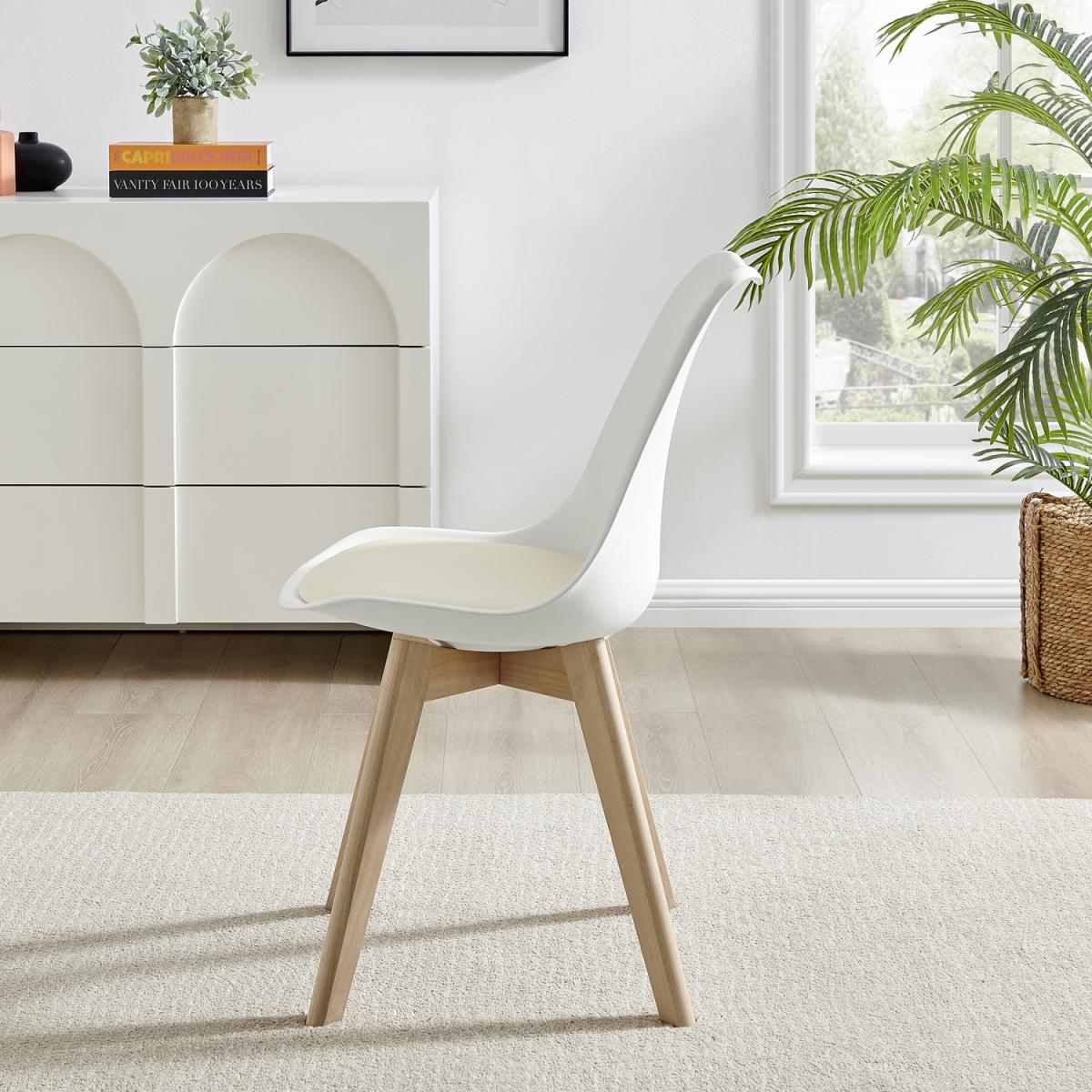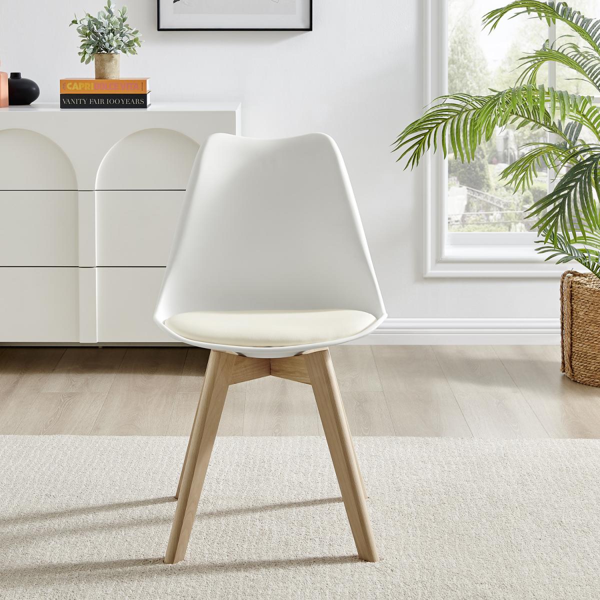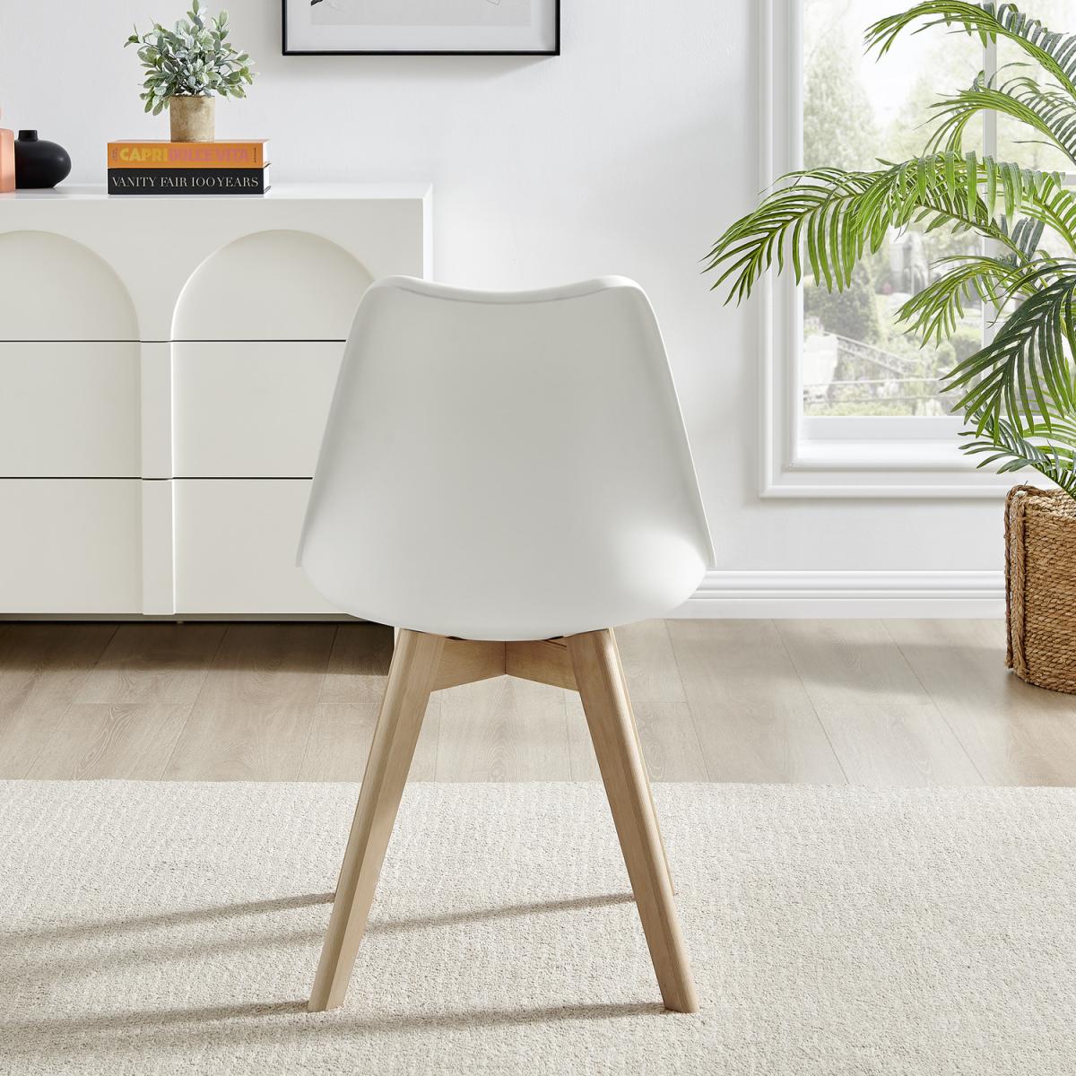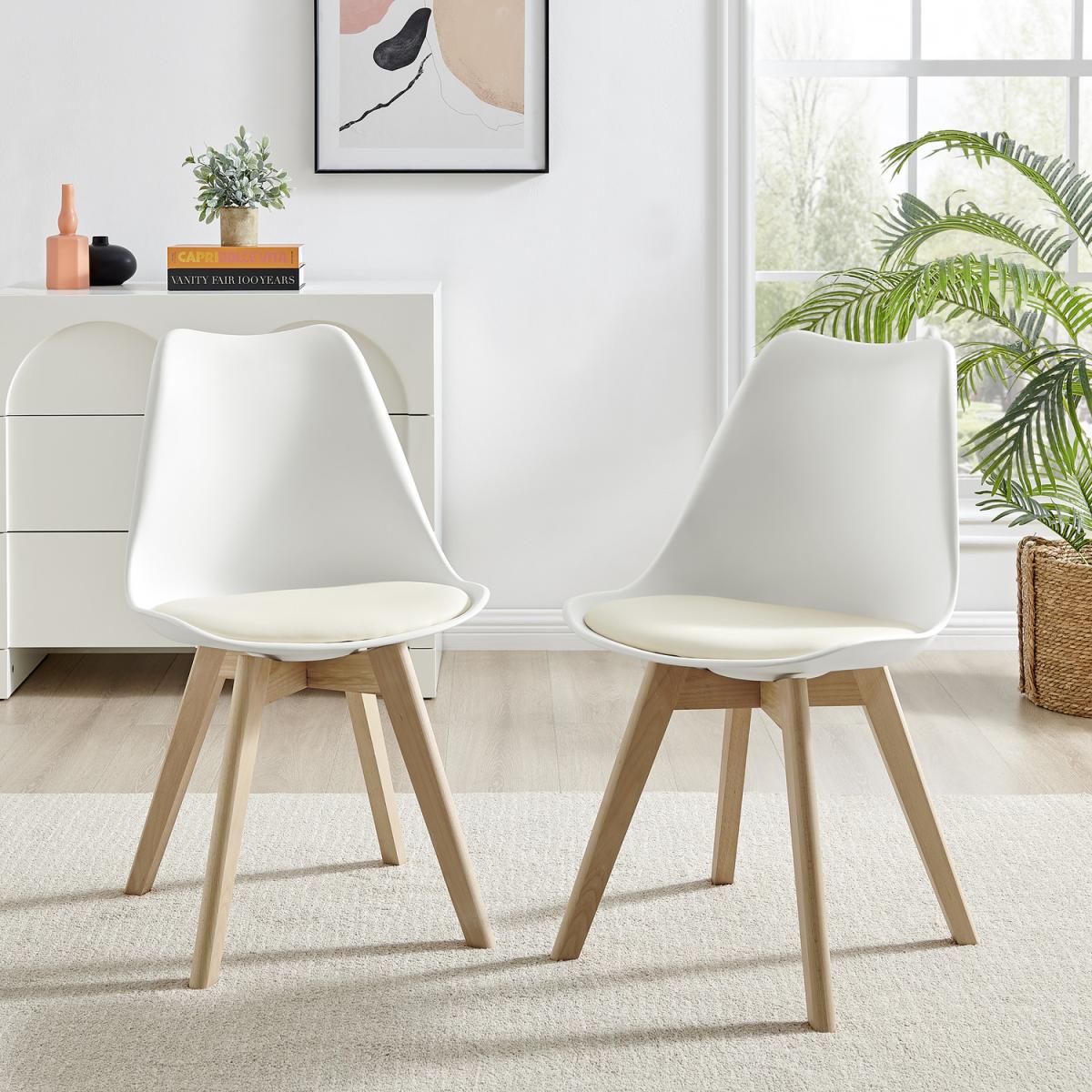 Our Stockholm chairs are all about that stripped-back chic Scandi vibe. The simple wooden angled legs look great paired with the faux leather chair and creates a stunning bright and breezy dining chair that will add some modern minimalist touches to your home and dining area. These chairs are the perfect combination of comfort and original style, suiting almost any wooden dining table. Ergonomically curved chair backs perfectly adapt to the shape of your body providing brilliant comfort. The wooden legs not only add to the aesthetic, but provide stability for use in a variety of environments. Our designs are fantastic value for money and are sure to give any dining room a touch of class, or make a great one off style statement. Also available in a range of other colours so check out the full Stockholm range today!