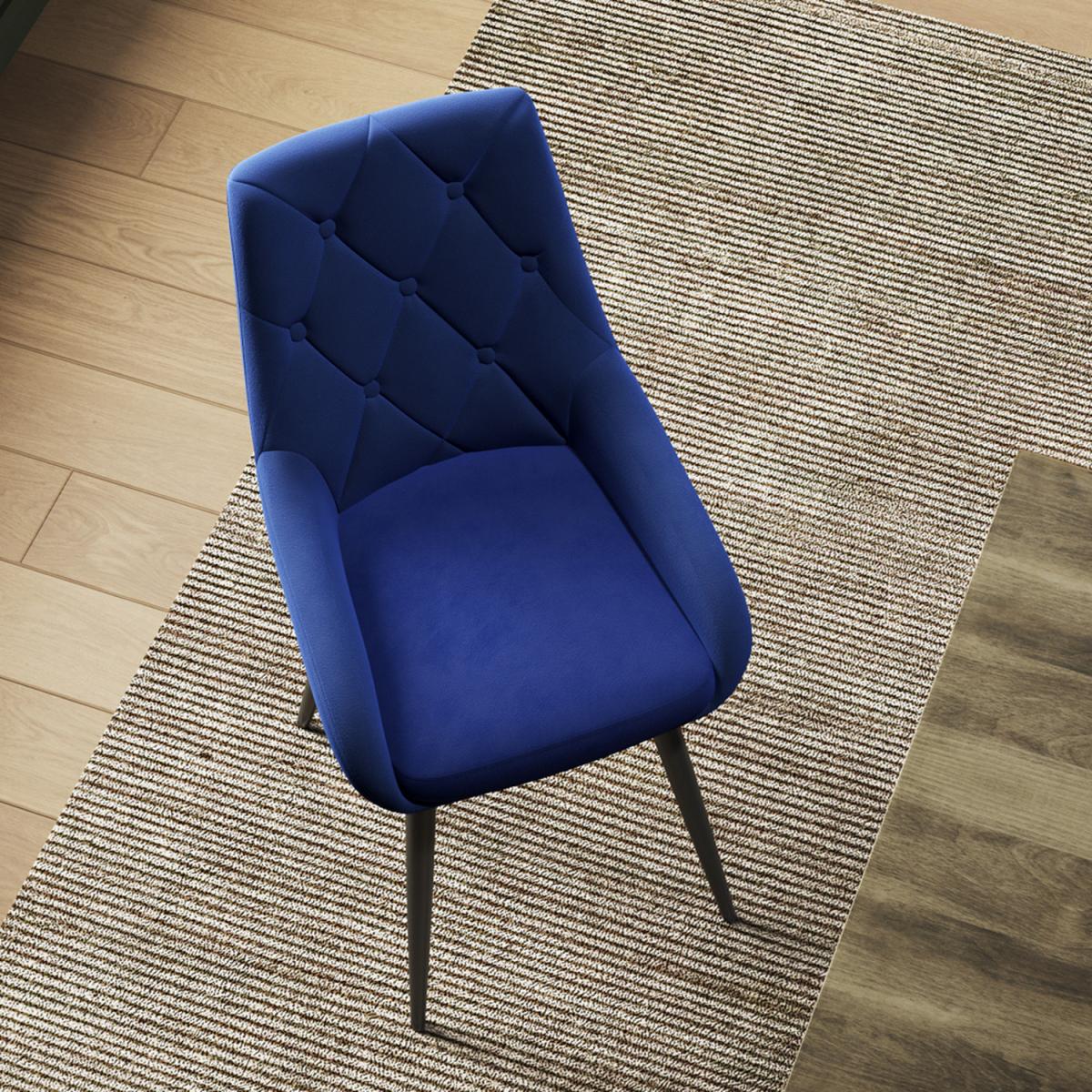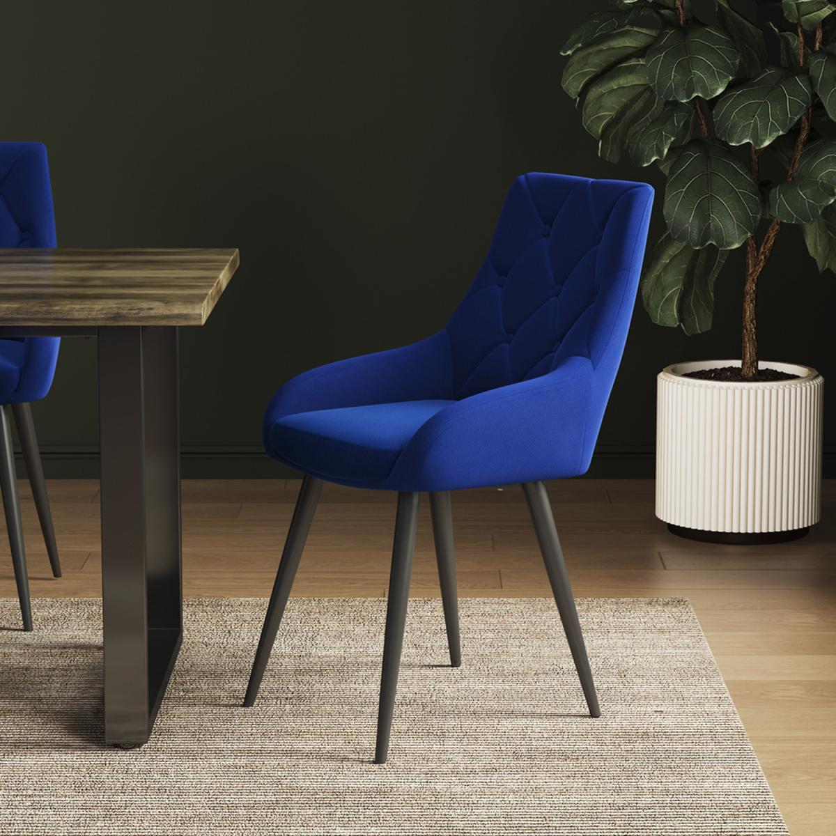 I’d recommend these blue velvet bar stools for anyone wanting a splash of rich colour without overpowering a space. The button-tufted back and slim black legs give them a neat, modern look that sits comfortably in both contemporary kitchens and more classic, traditional settings. They work well against a pale stone island or a warm oak countertop, while metallic accents in brass or matte black tie the scheme together. For practical styling, keep surrounding surfaces uncluttered and add a simple linen or sheepskin drape over the seat to soften the overall feel.