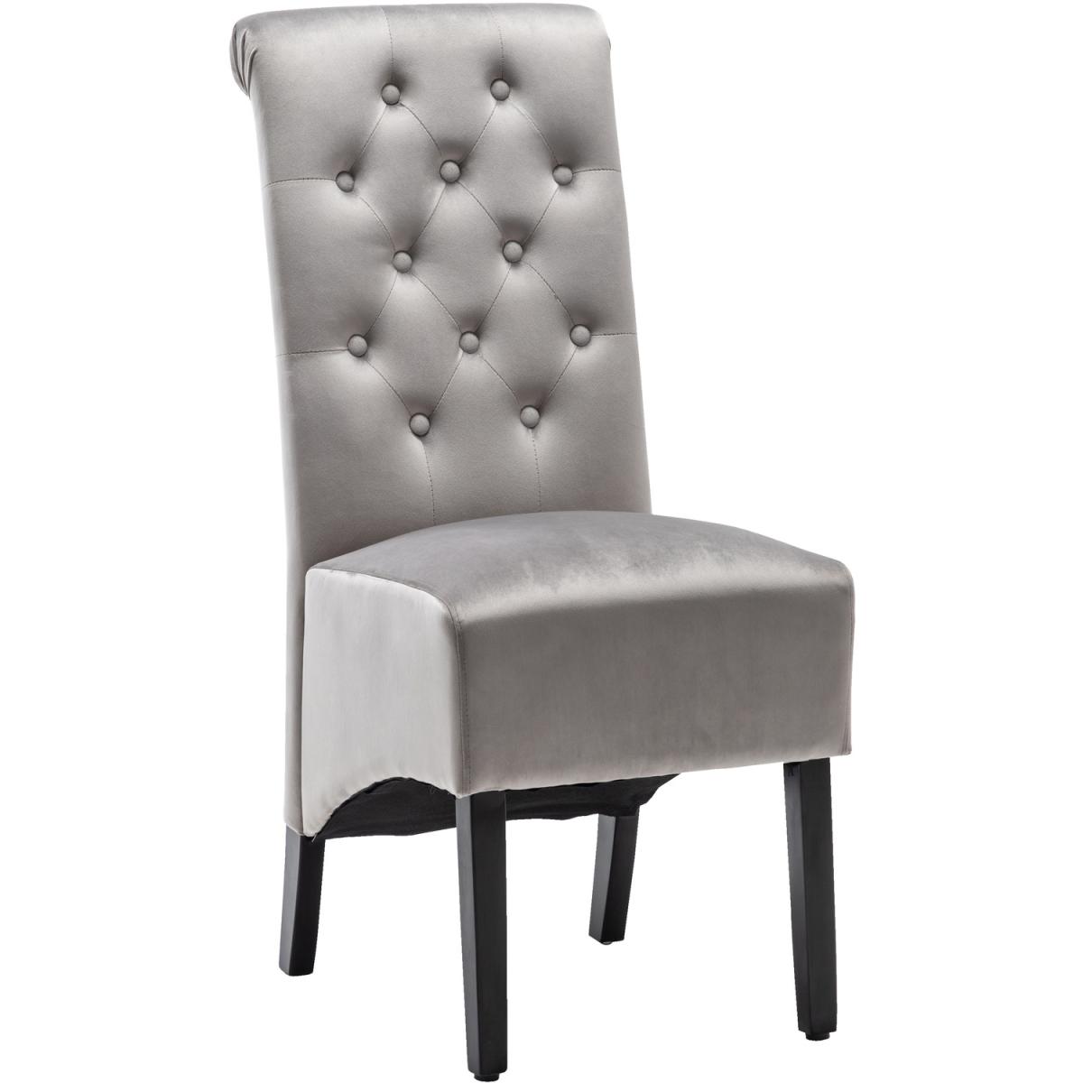 I love this chair for its plush velvet upholstery and classic button-tufted design, which instantly adds a touch of luxury to a dining setting. It works particularly well in contemporary and traditional interiors, adding a subtle elegance without overpowering the space. For styling tips, consider pairing it with a sleek glass or wooden table to let the fabric and finish stand out. Practical advice includes using a fabric protector to maintain its appearance and opting for a light, neutral palette in the room to allow the grey velvet to stay versatile while serving as a refined focal point. This chair is a great choice for those seeking comfort and style in their dining area.
