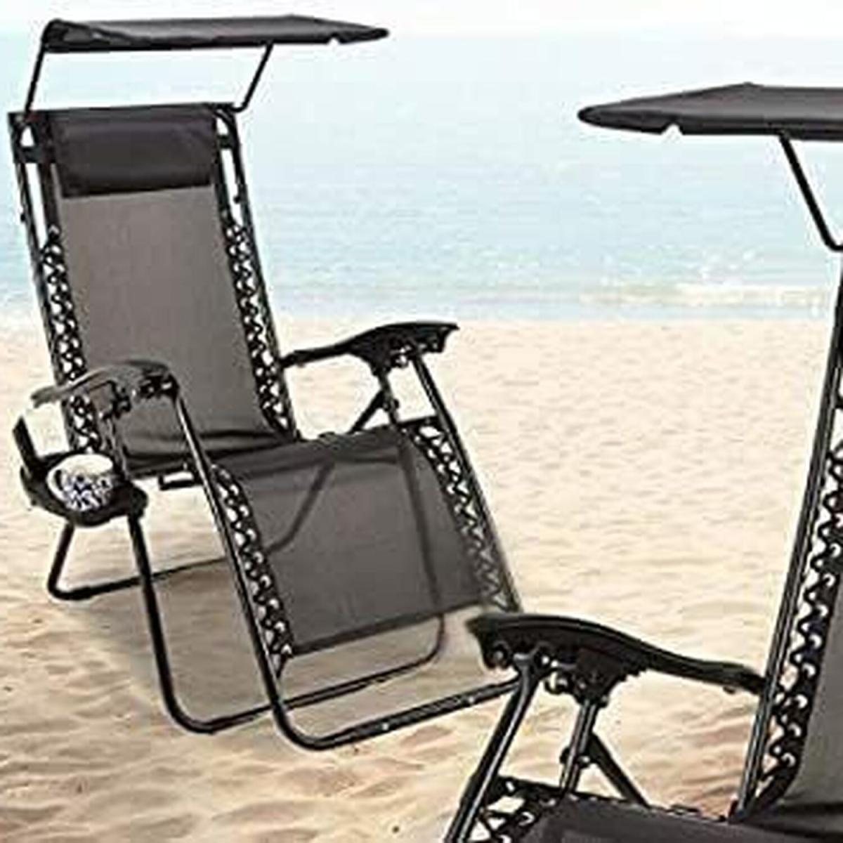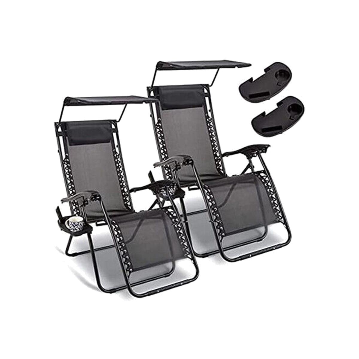 Soak up the sun in style with this set of 2 zero gravity lounge chairs. Featuring a cup and phone holder, a head rest and fully adjustable canopy, you can enjoy a luxurious recline in the sun and protect yourself from its rays if it gets too much. This set of 2 comfortable and easy to use zero gravity loungers are crafted with care and attention to detail from a tubular steel frame and 600. D PVC Oxford fabric. The lightweight powder coated steel frame will prevent rusting on the chairs and the high quality text Ilene fabric ensures a quick and easy clean. These sun loungers will have no problems with being transported or stored away. They are easy to move around your garden so you will be able to position yourself in the prime sunny spots. These stylish sun loungers can be effortlessly reclined making them ideal for reading or summer snoozing. The canopies are fully adjustable meaning you can block out harmful UV rays when sun lounging or simply block out the sun if you are trying to read or relax. Use in your garden on your lawn, decking or patio, in the conservatory or by the pool, these chairs are perfect for relaxing or just lounging around in. Lightweight and portable, they also make for handy items to take to the beach, festivals, caravanning and camping. Easily folding down neatly, these lounger can be safely tucked in a cupboard or shed. Ideal for use as an additional seat during gatherings and for those with limited space.