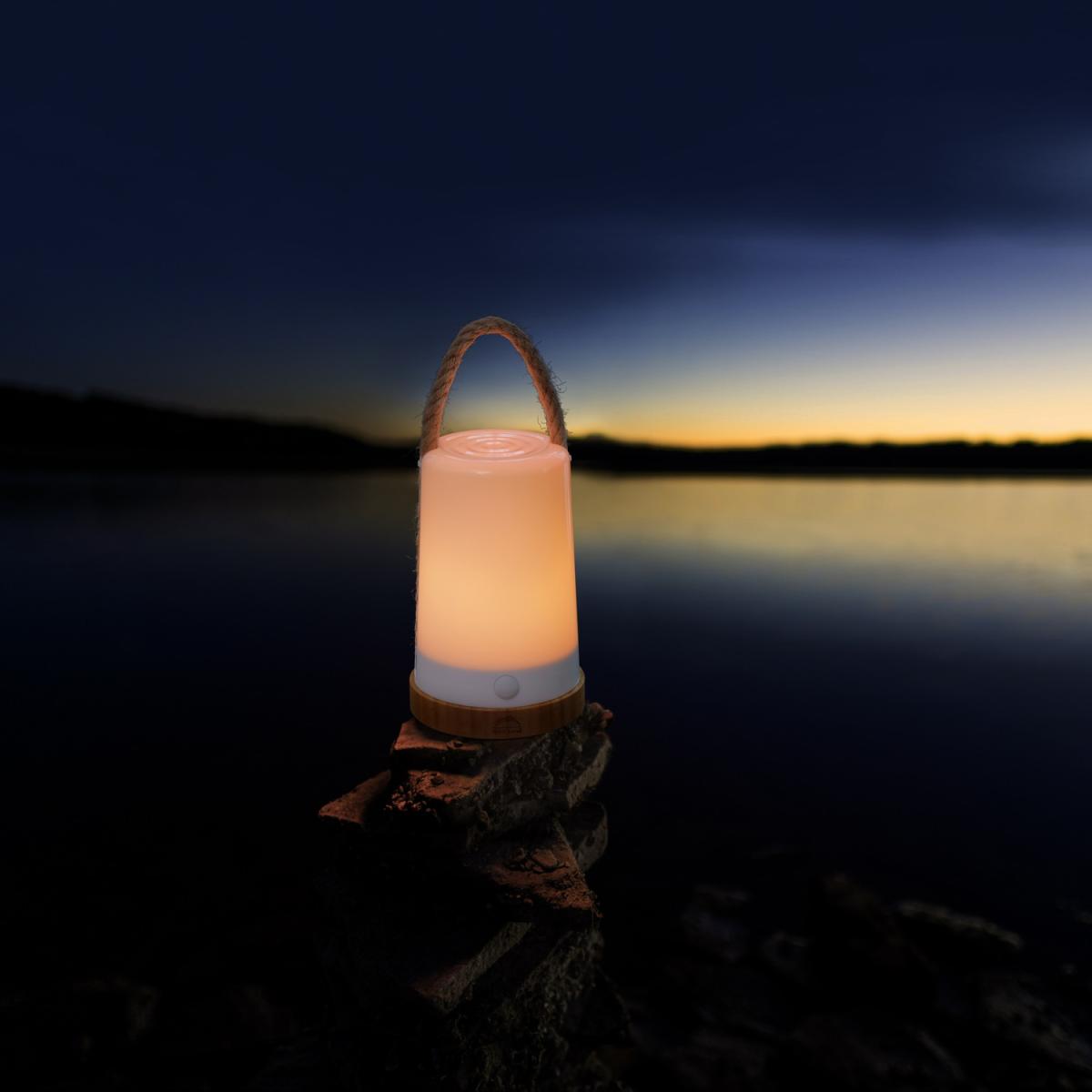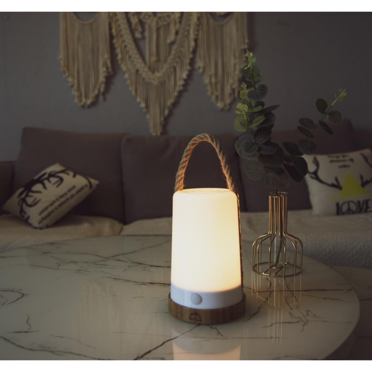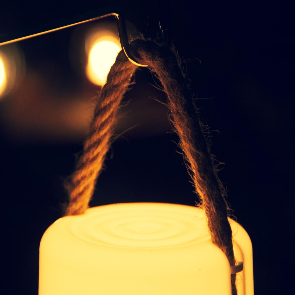 This 3.2W Portable Rechargeable LED Lantern emits a 2200. K warm light with four lighting modes (between 90 and 230 lumens) Low, High, Flame and Breathing. The 3.7V 3600m. Ah battery charges in around 4 hours and provides between 4 and 11 hours of use. The Lantern has a strong handmade hemp rope handle, ideal for hanging the lamp. At around 380g in weight, it is portable and perfect for indoor or outdoor use.