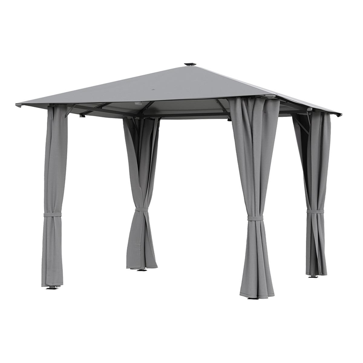 3*3m Solar LED Garden Gazebo with Curtains - Light Grey